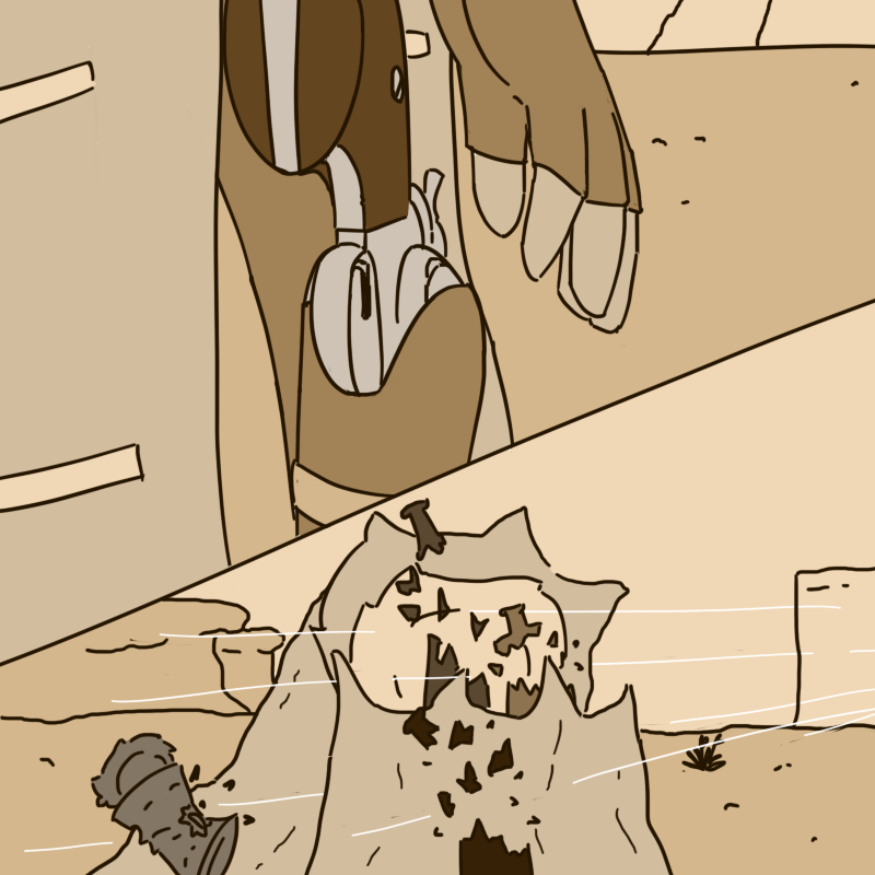 You take a stroll towards the mesa, coffeepot in your offhand. It's tradition around these parts when you meet someone out on the trail to share something you have, and they will do the same.
