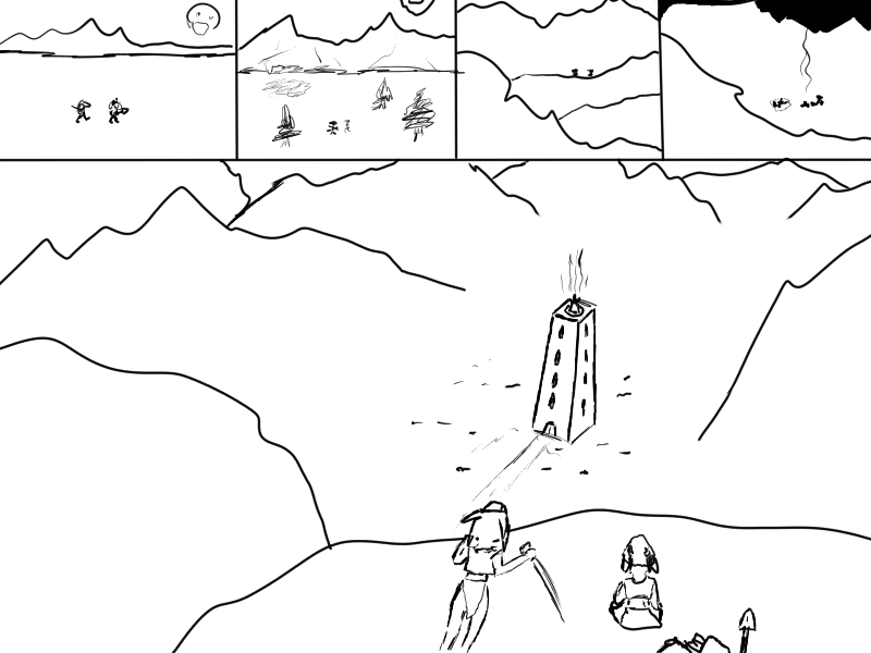 This is a rough map of the camp. There's a few empty tents and lean-tos after the recent attacks, but everyone's mostly fine. There seems to be some kind of commotion in the center of the camp, that's probably where everything got to.