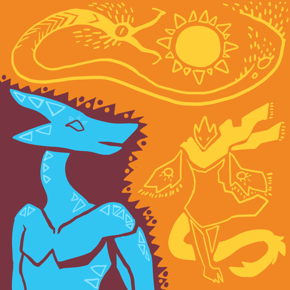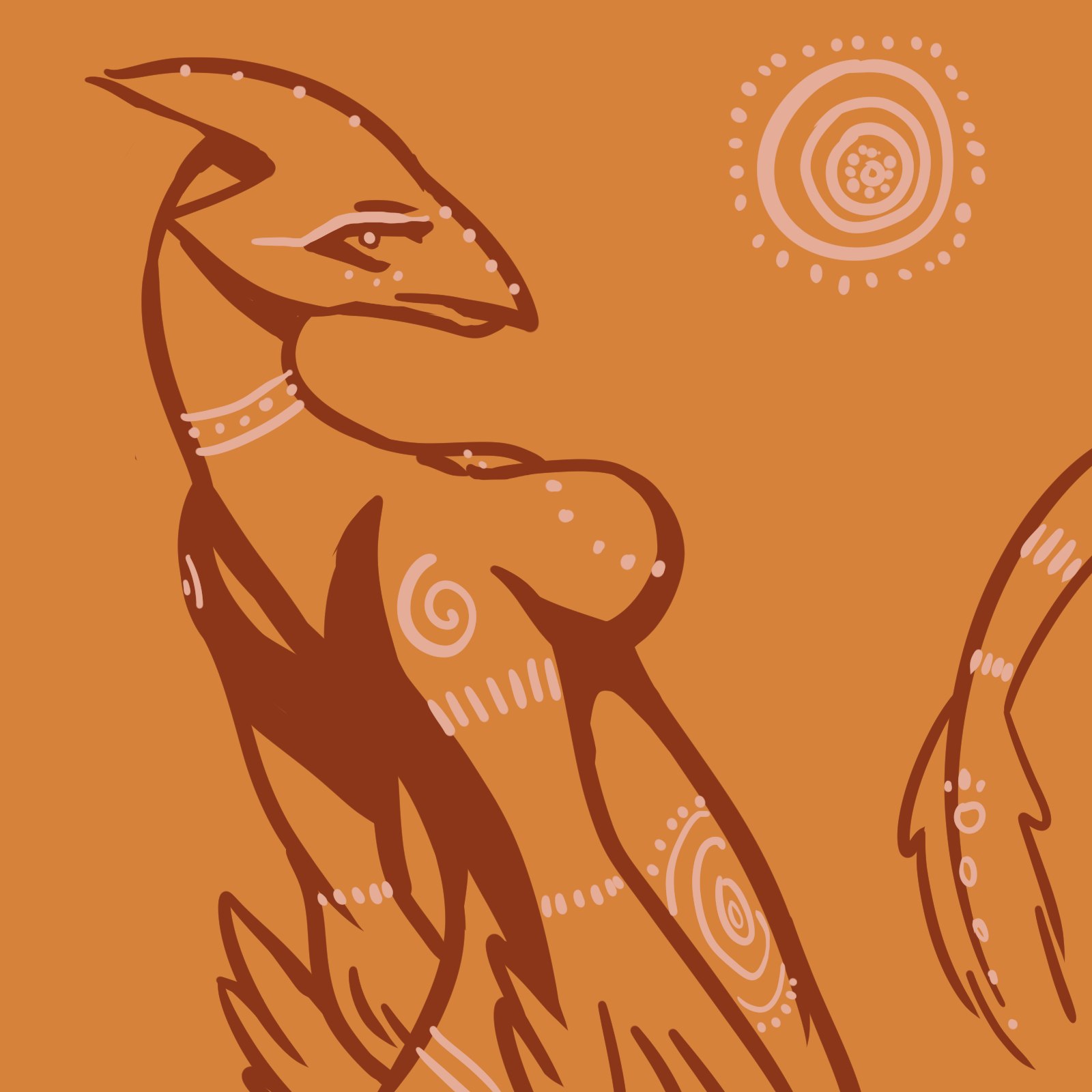 Right: Ikarians. Small to medium pseudo-reptilian creatures. Inhabit the Mountains of the Sun to the north. Dignified and swift, the children of the Sun herself. Very diverse range of subspecies, each with different talents.