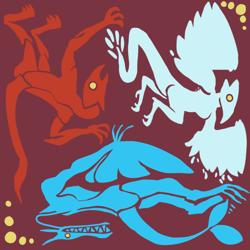 Left: Ikara-Si, the Sea Dragons. Taller and more lithe, incapable of incredibly fast movement. Must be fully submerged in water once every three days to avoid serious scale damage. Carnivorous. Powerful tail. Long, thin jaw, with sharp teeth, evolved to snatch up fish. Able to move through water practically unseen and completely silently. Lay eggs.