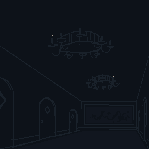 You push the door open carefully, keeping the lantern lowered. It's very quiet. Thorne pushes up behind you, and you feel her glancing over your shoulder.