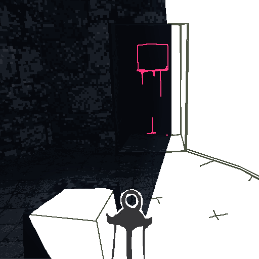 Oh. Great. The ink monster went through that door. Is that bright red in the cracks your blood?