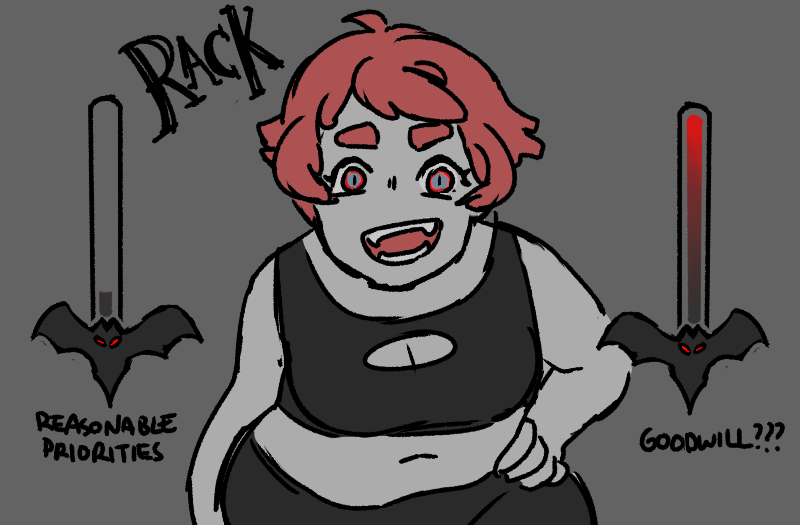 “Cradle goons aren’t gonna wait til you’re nice and well-rested before trying to dismember you,” Kel replies cheerfully. “We start now. That’s it.” She gives Ricardo a toothy grin as she continues. “Now, I’m not gonna let you spar with Mignon, because you just wouldn’t learn anything from that. I mean, if anything, you’d just learn how much agony your body can handle before you pass out, which isn’t real useful at this stage. For the same reason, you can’t spar with me, either.” She sweeps her arm out at the remaining three women, the same way Mignon did before. “So pick somebody else.”