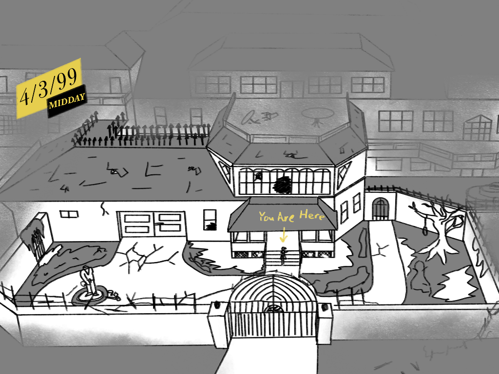 > D: Do a full survey/tour of all points of interest. (Time will proceed to EVENING if done in a big chunk like this.)