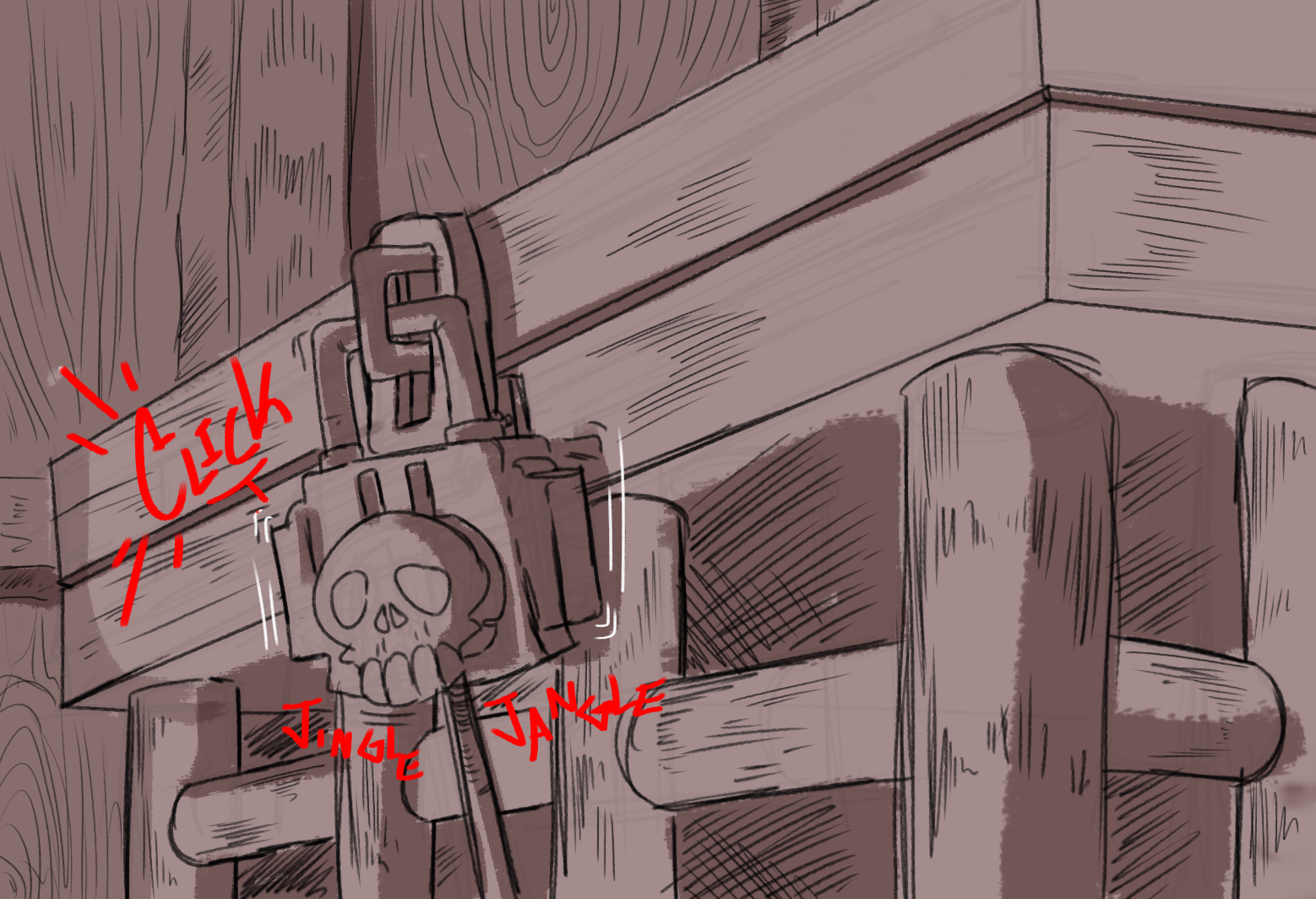 Listen at the door then check to see if it's locked. If it is, start searching the room for the key. ...wait why would the key even be in here
