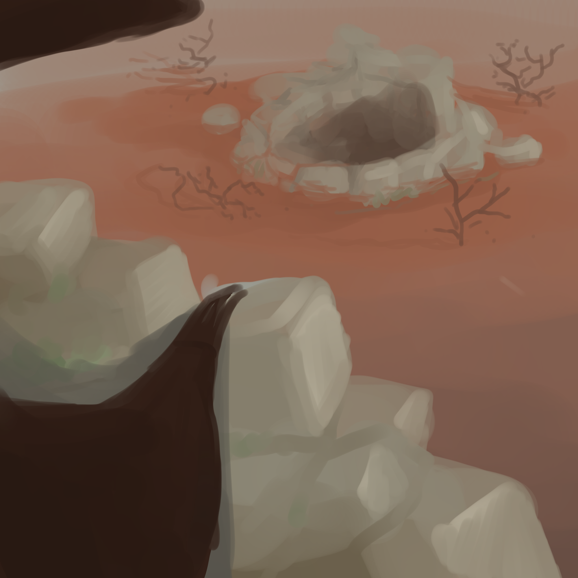 There is no sign of life anywhere, save for some grey brick structures which appear to have been placed purposefully. They look run-down.