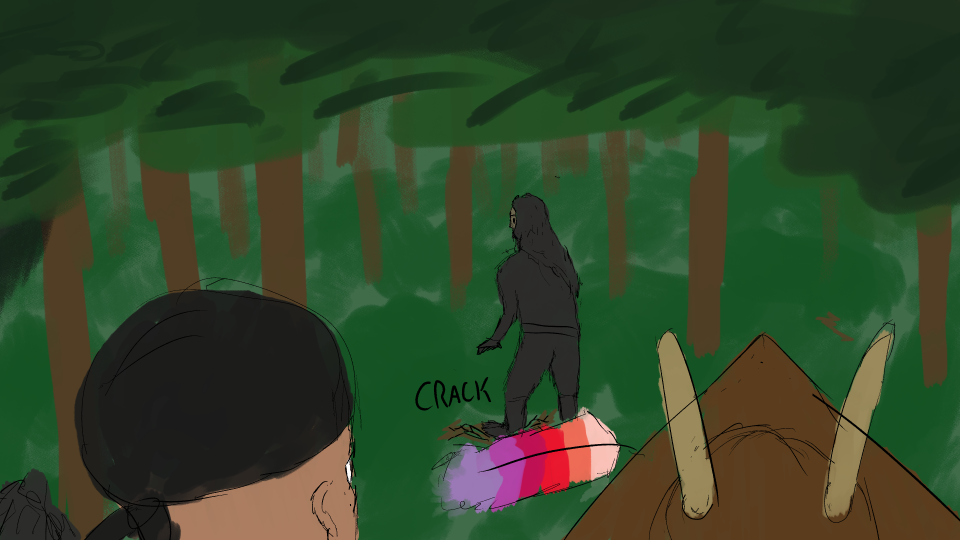 Well, at least you know the exact surroundings of the camp, and have a vague idea of their composition. You know one took off running, and it wasn't towards town...
