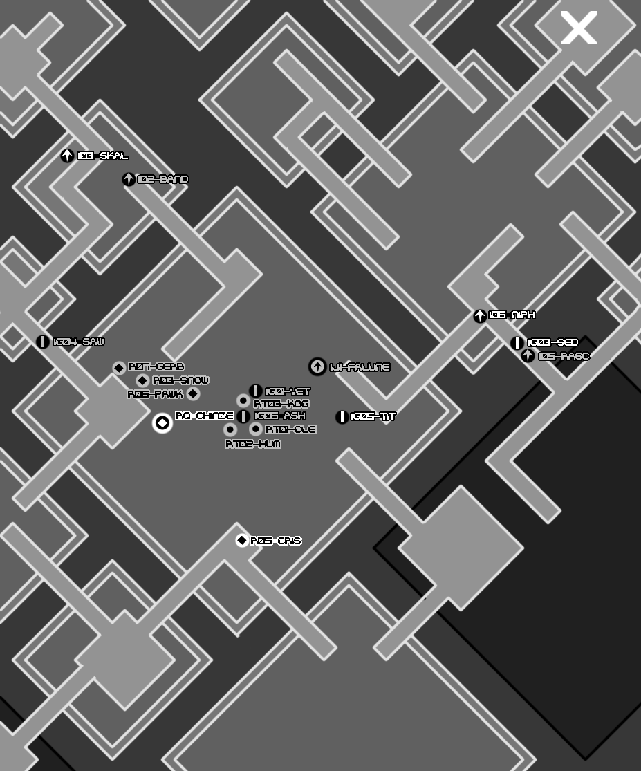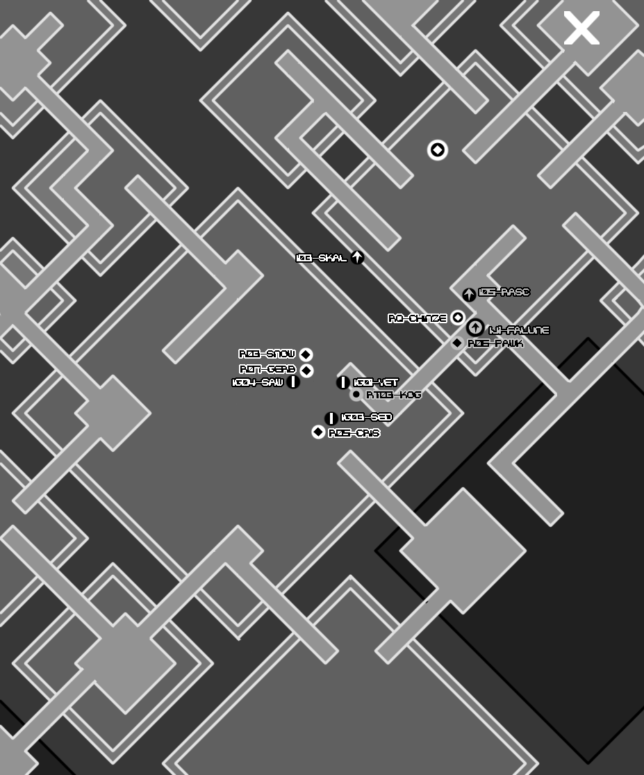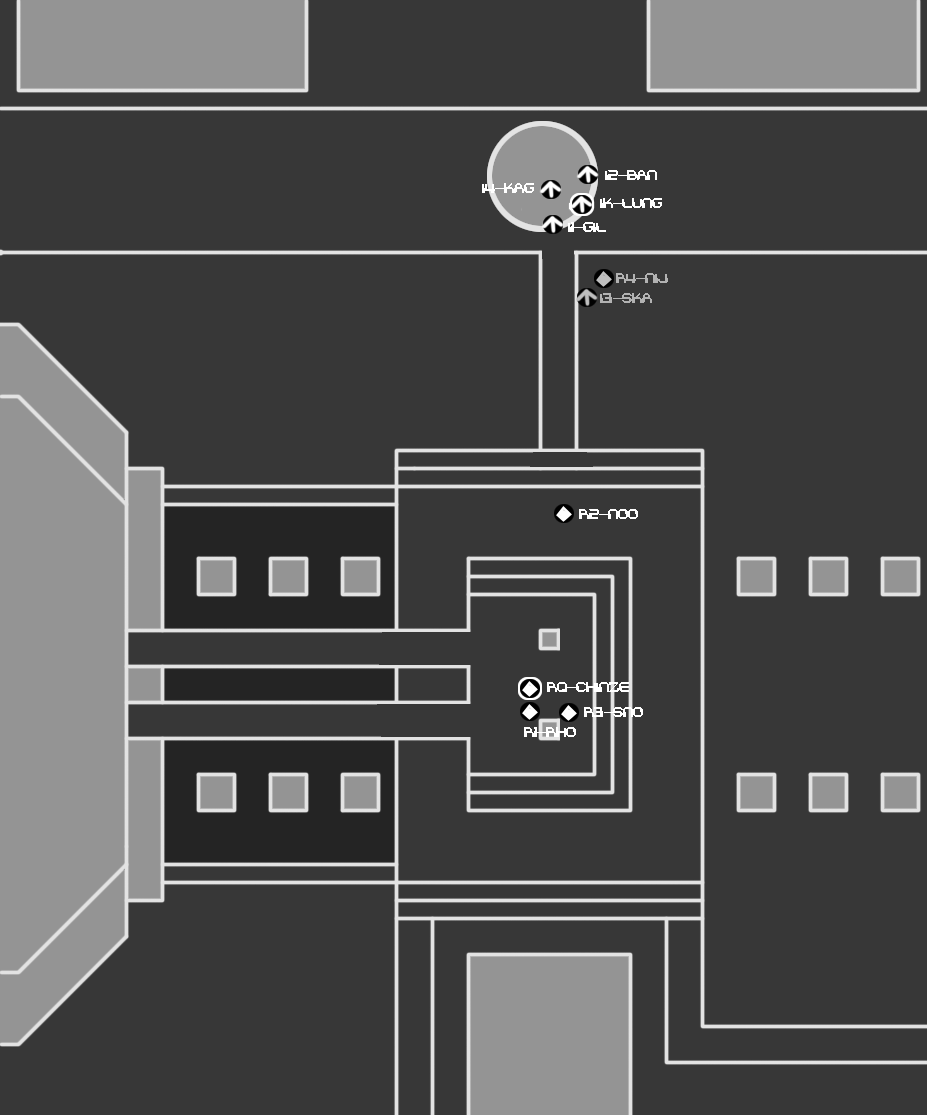 The Muffy97 memorial menagerie takes us through pedestrian streets. This is also not very ideal. There would be more room for cover in alleyways, around corners, possibly in buildings, but we'd be endangering our citizenry by taking a route through pedestrian areas. The only other negative I can think of is that our melee equipped threats may have an easier time with this route than we want. The available cover isn't as effective against a foe charging into you.