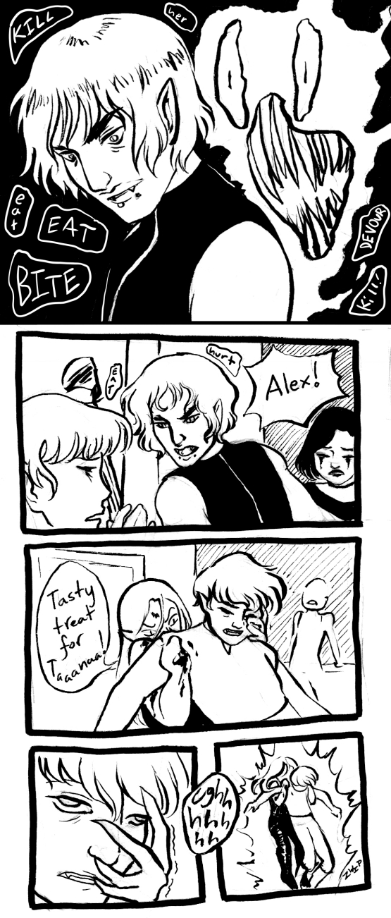 “You like virgins?” Tana answered with a question, something that Xavier found highly irritating, and she seemed to be releasing pheromones associated with violence and fear. The humans were starting to lose their initial excitement at being invited to a highup party, and confusion started to take them. Xavier tried to soothe the humans and counter the rising tension, but he was out of practice, and his passive hypnosis was weak.