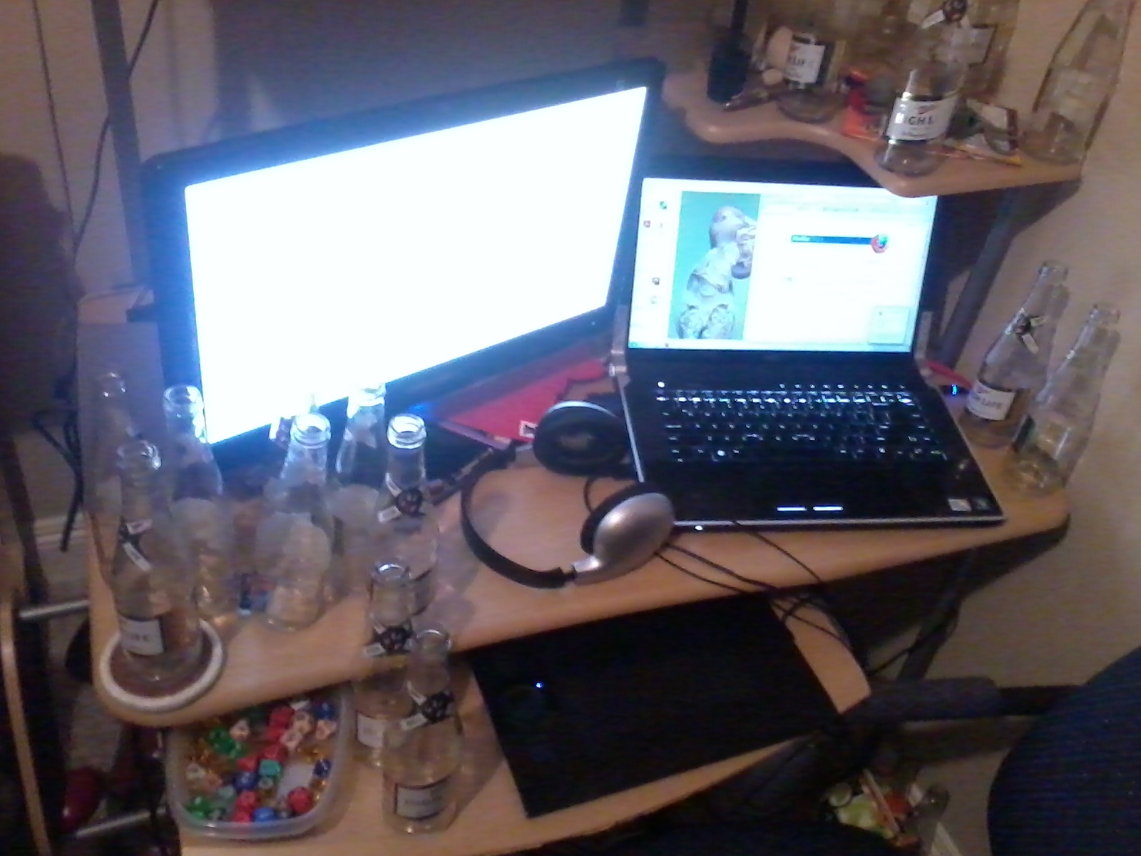 You've got a computer and shit. Same model box as me, near as I can tell. Not that I'm rich or anything, but still, not too poor. Your desk is fancy as fuck.