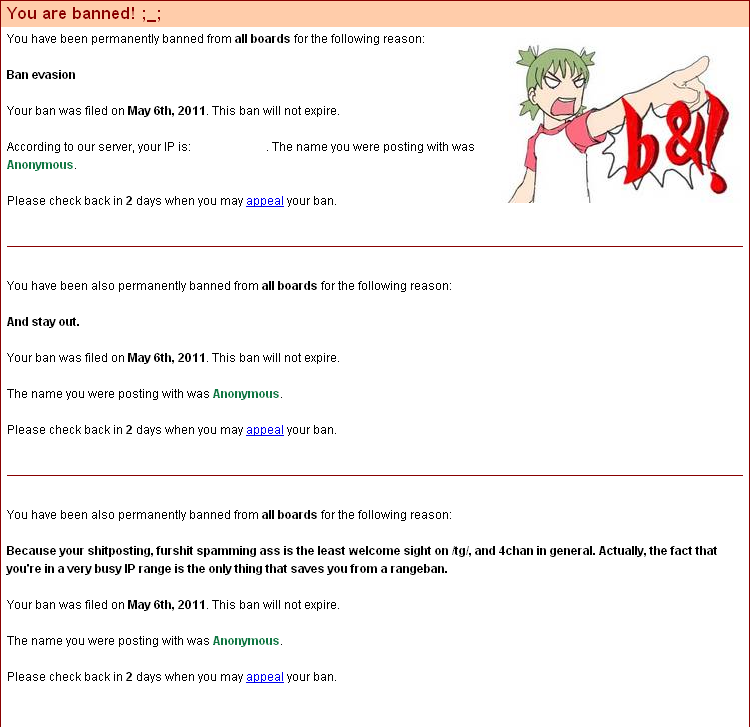 >4. If your post is a trolling shitpost, you may find yourself treated to a special summerfag ban. Generally one week global, it's more an encouragement to do better next time.