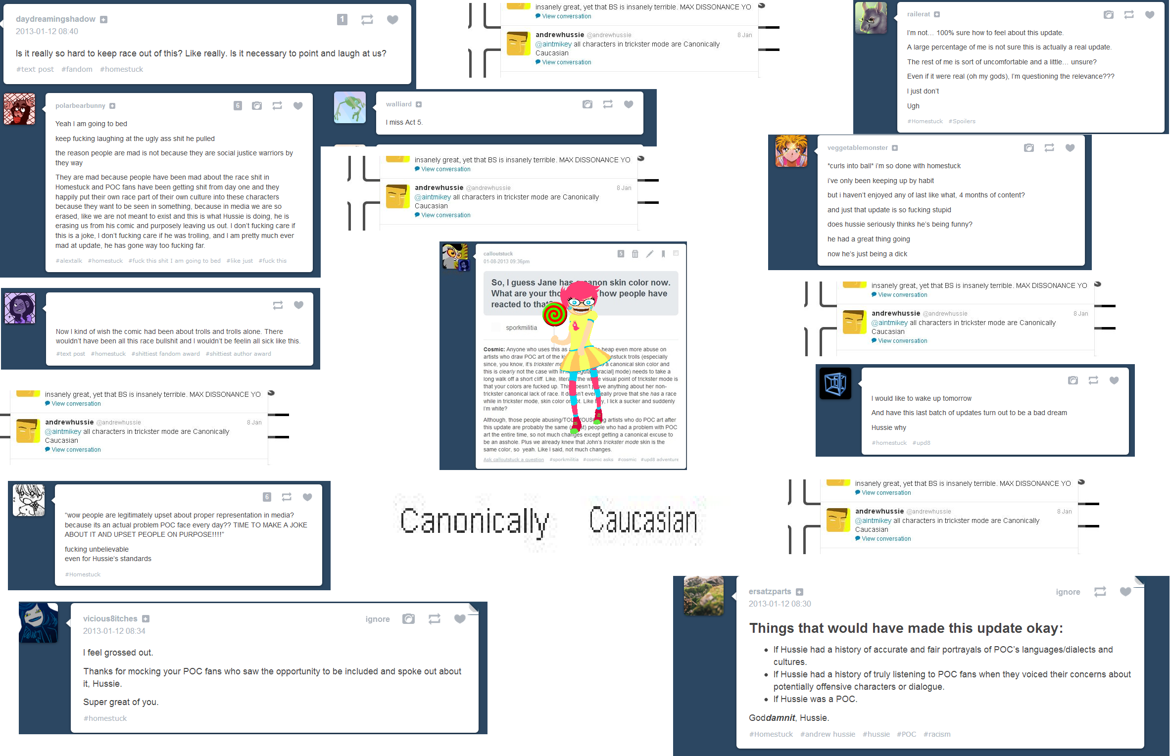 12: The switched roles in the book make sense if you take into account that it was written to anger the Batterwitch. Calliope expressed reluctance to kill her brother, and was turning to it out of desperation, not hate. The rainbow drinkers don't change their appearance- they just glow due to a biological trick, and Jade transformed via God Tier/sprite prototyping shenanigans. A Muse of Space's powers would not by any stretch of the imagination include disguises, and besides, there are so many specific details tying Lord English to Caliborn's appearance that it's just beyond ridiculous to say that Calliope is posing as him. Saying that Caliborn is a good guy because his outfit references Doctor Who is also ridiculous.
