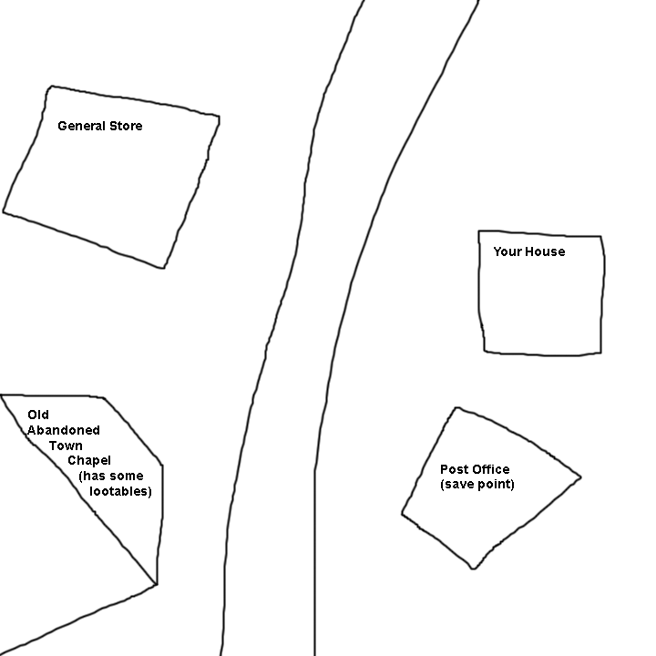 Grand idea man, I would def. go in for this one. Also, I realized having the starting area hut segregated into its own screen might be a good idea, see diagram.