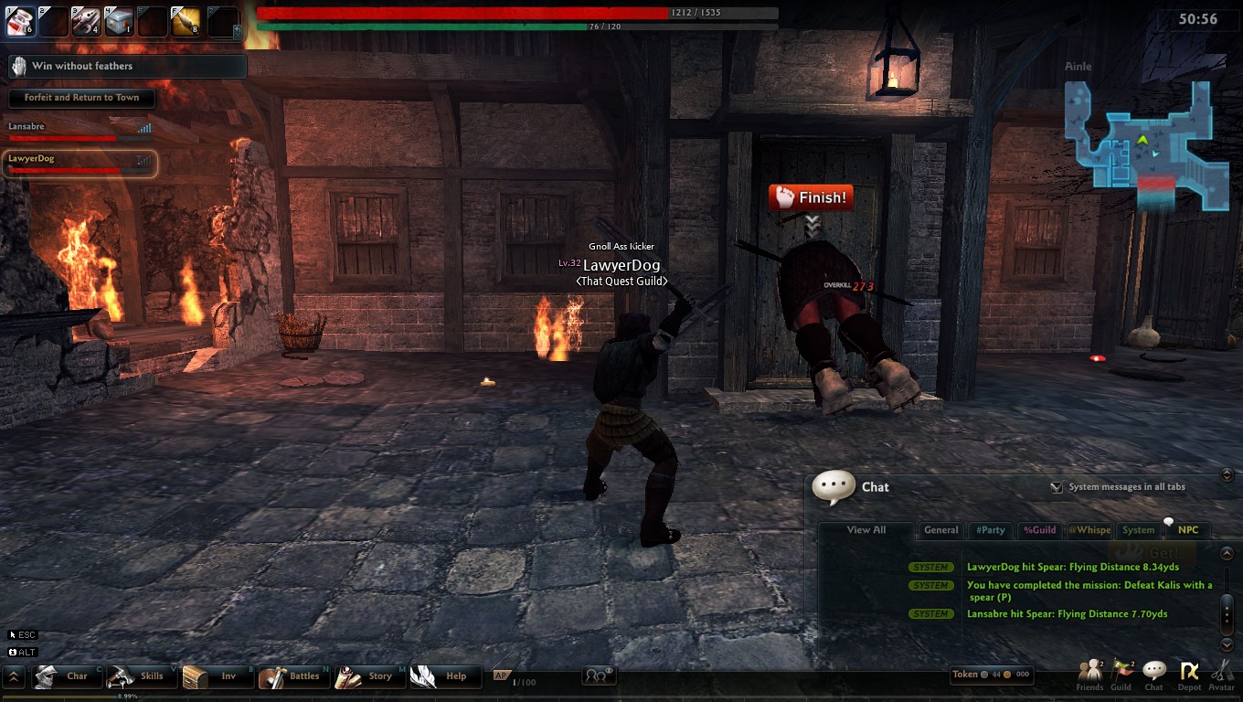 Of note: in this finishing blow shot, I'm actually inside the fire.