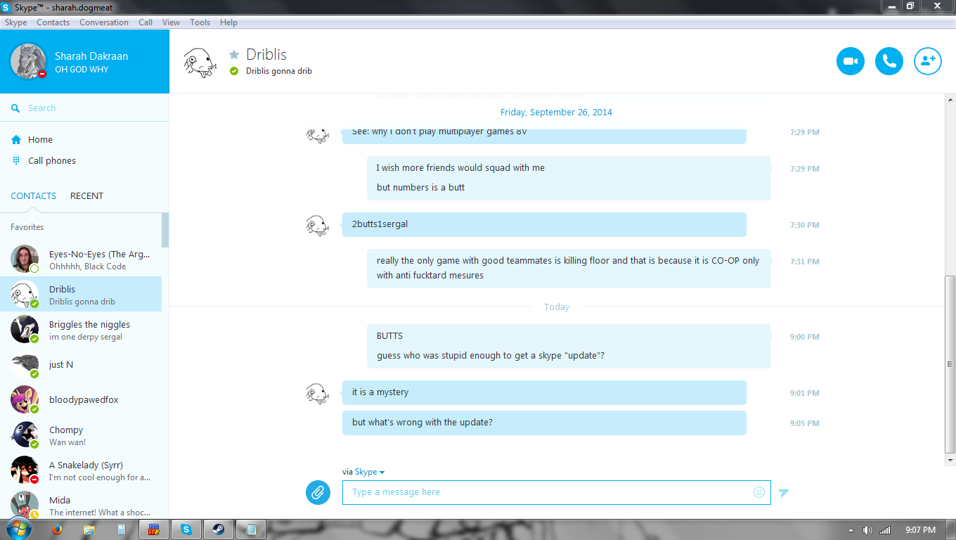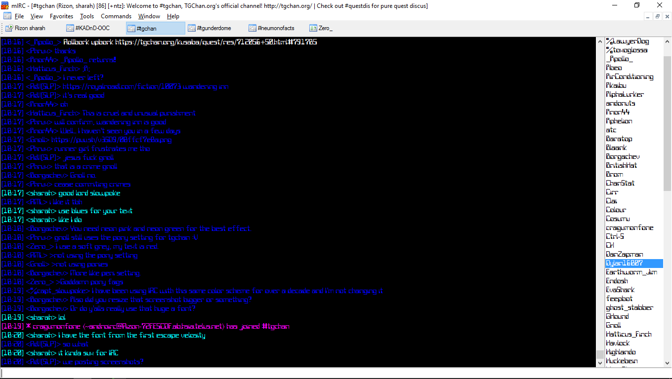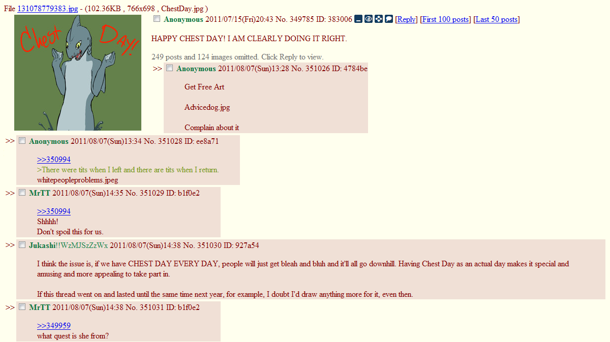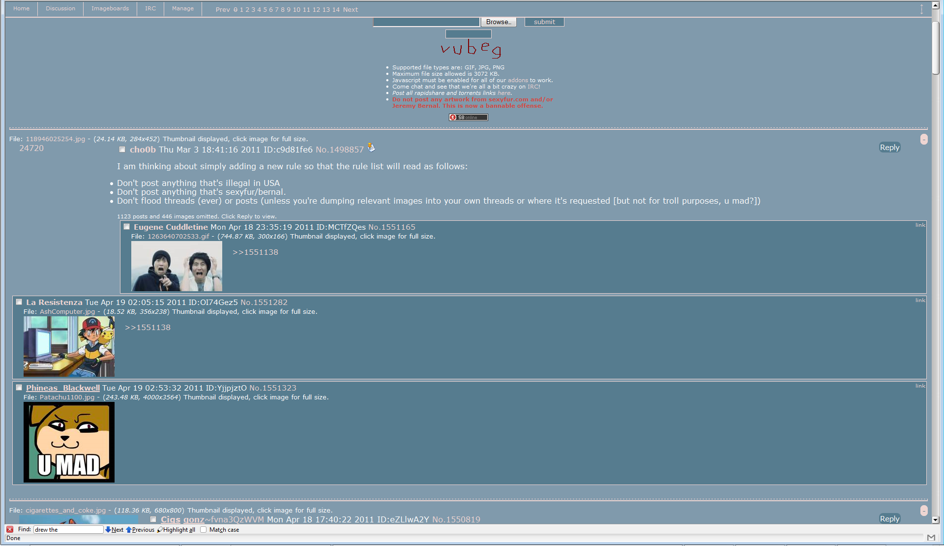 [04:01] <sharah> dasaki: http://images.4chan.org/v/src/1310459104475.jpg [04:02] <%Dasaki> :| [04:02] <%Dasaki> I fucking hate how the satellite company cycles IPs [04:02] <%Dasaki> You have been banned from all boards for the following reason: [04:02] <%Dasaki> Replying to CP/Jailbait [04:02] <%Dasaki> Your ban was filed on July 9th, 2011, and expires on July 23rd, 2011, which is 11 days from now. [04:03] <%Dasaki> I DON'T EVEN USE 4CHAN [04:04] <sharah> FFS