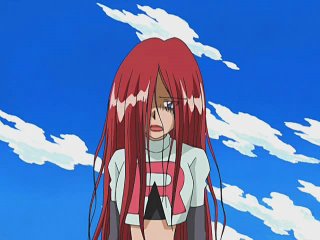 /v/ edited Jessie's hair to be red again after jizzing its pants when she got drenched with water.
