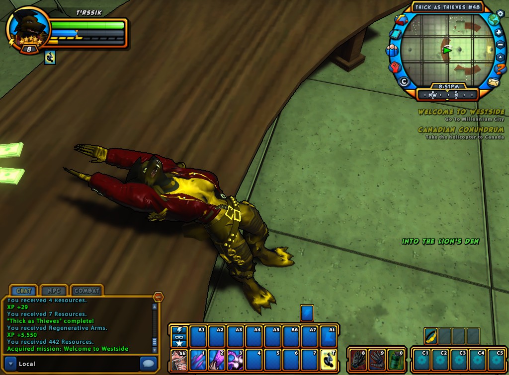 T'rssik learns why it's not a great idea to use acrobatics to jump onto the deceptively high-voltage phone lines.