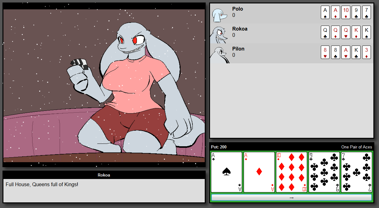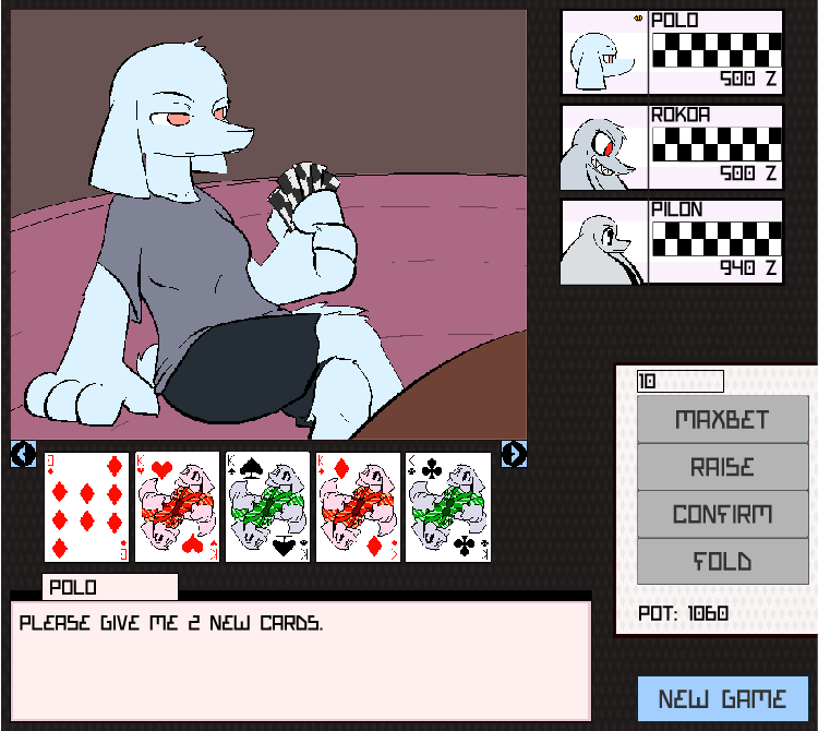 Load poker to just confirm some UI things with raises. This is the first hand I'm dealt. :V
