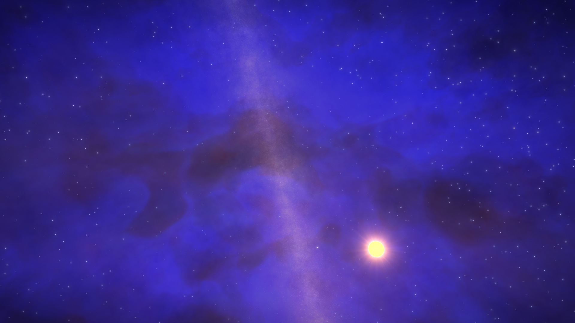 Visible: the first milestone on a huge trip. Barely 1/10 of the first leg, the first leg being 1/3 of the straight line trip, over 51000 light years, one way.
