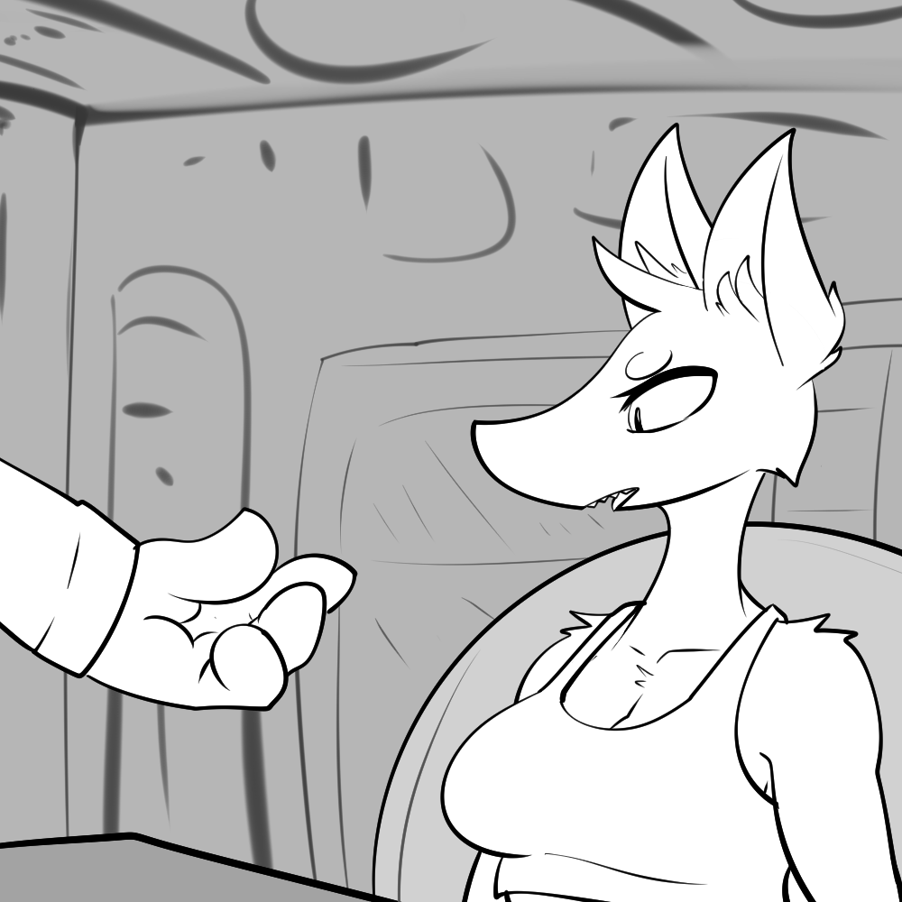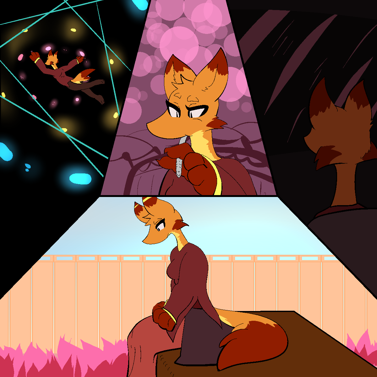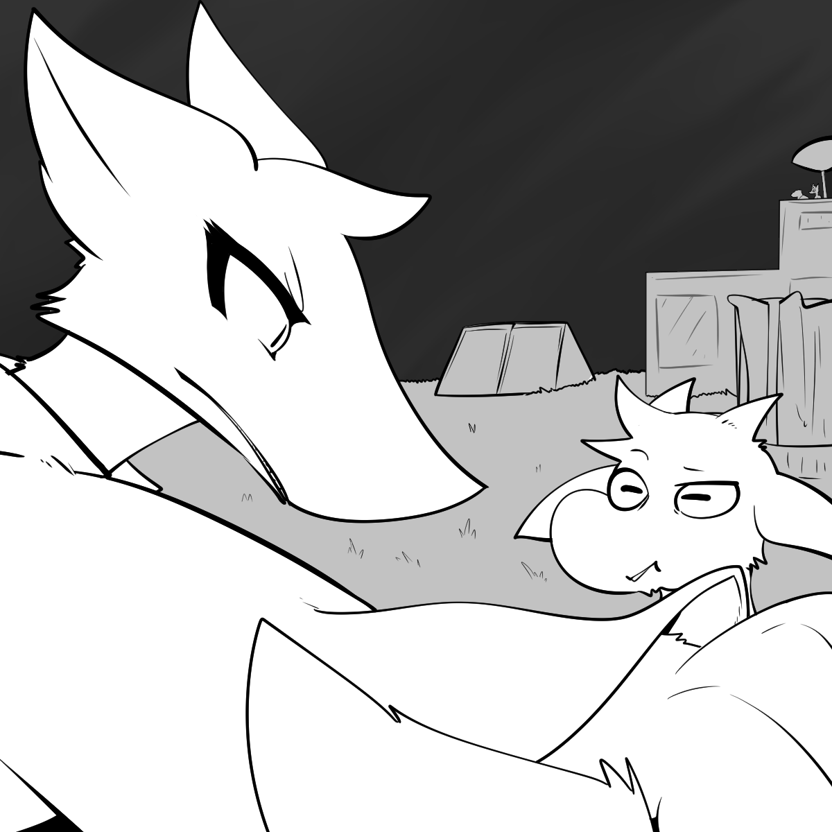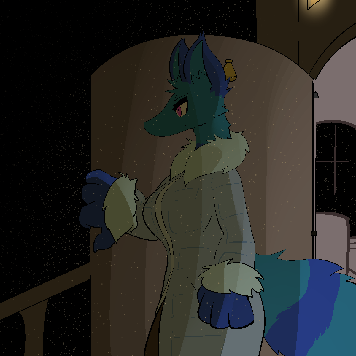 Ah. She really did put me to sleep in her little soul repository, and I wake up to the feeling of a brush running down my back. It seems that Pillet paid Vix enough to have her sole attention for the evening, and went for a room with a skylight. As my consciousness fully returns, I find us looking upwards.