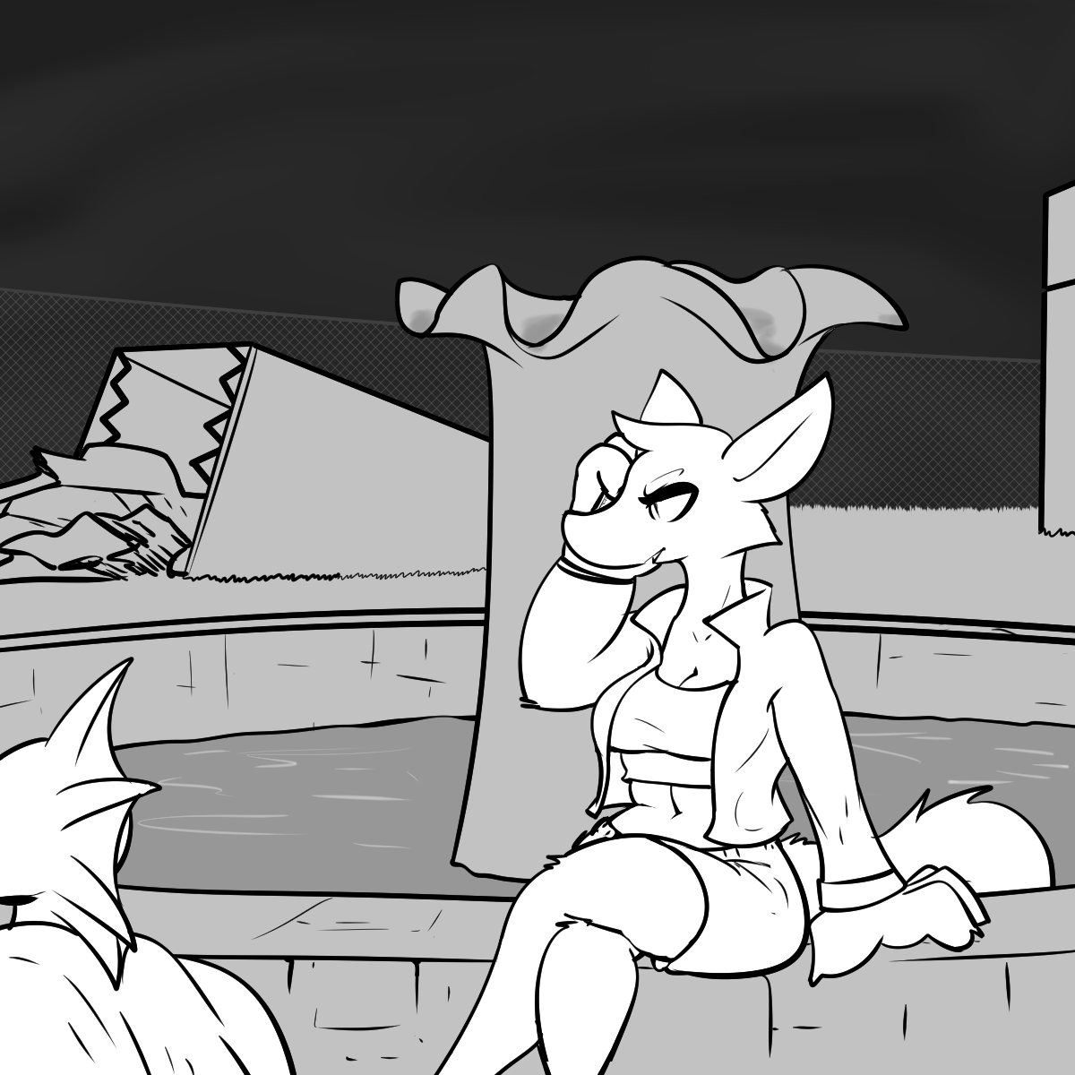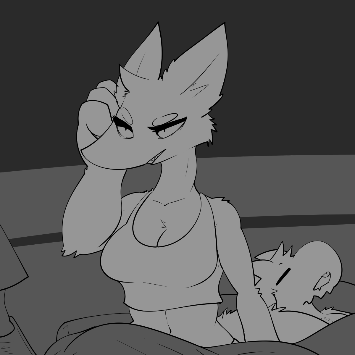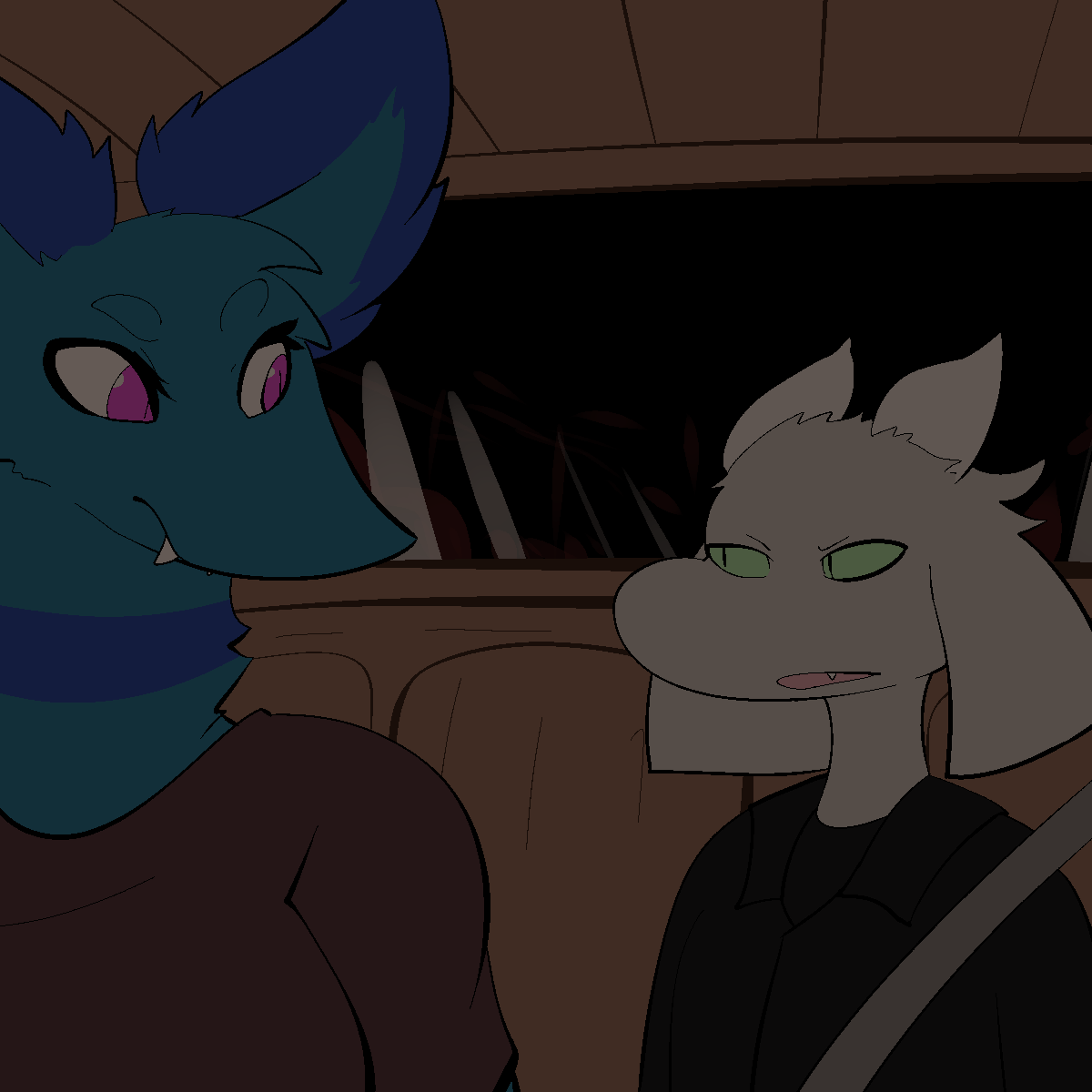 Ah. She really did put me to sleep in her little soul repository, and I wake up to the feeling of a brush running down my back. It seems that Pillet paid Vix enough to have her sole attention for the evening, and went for a room with a skylight. As my consciousness fully returns, I find us looking upwards.