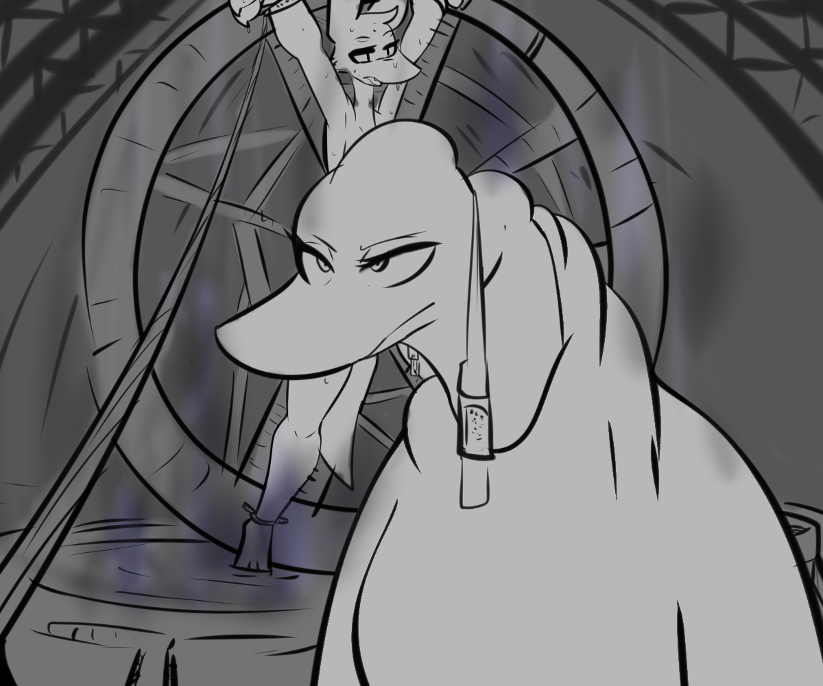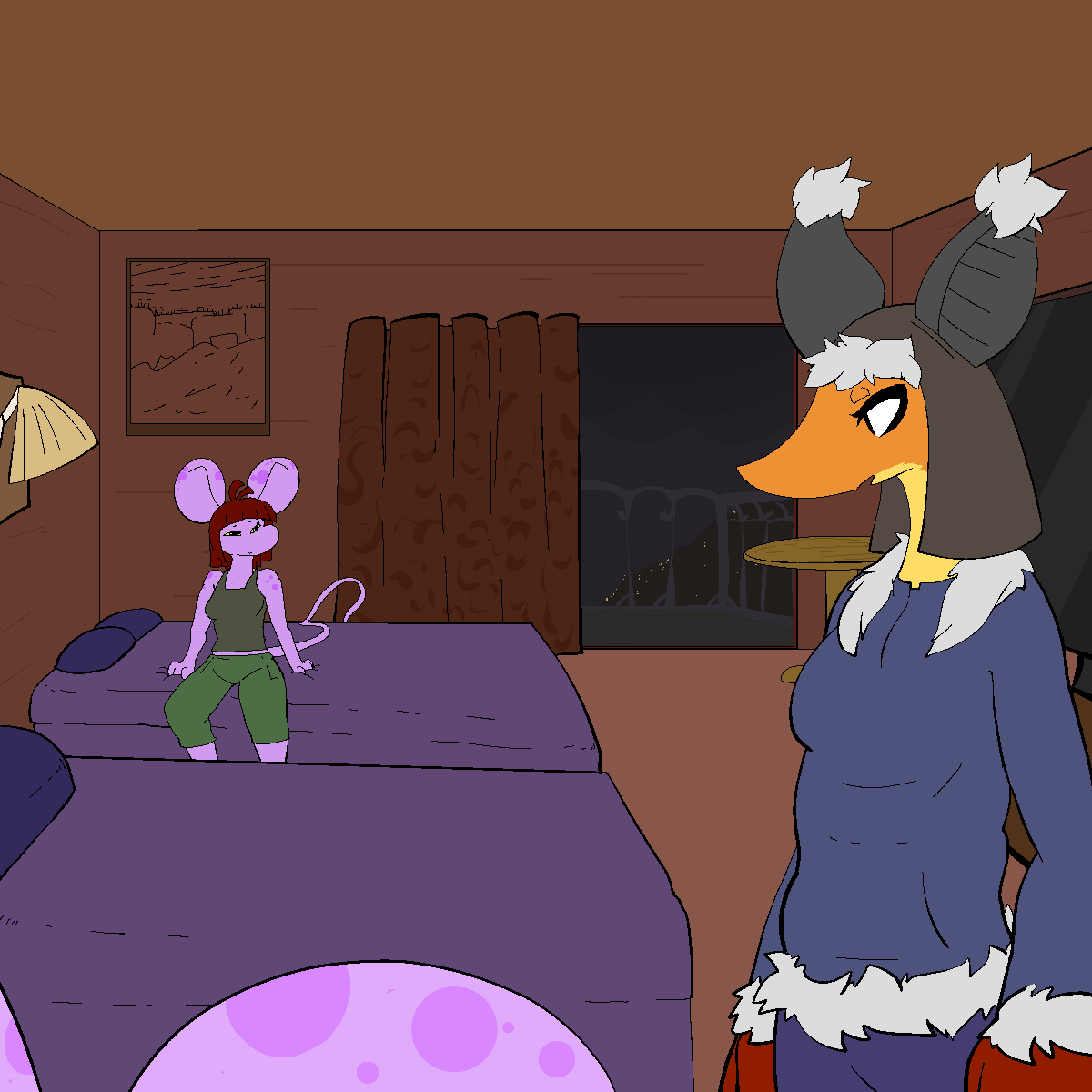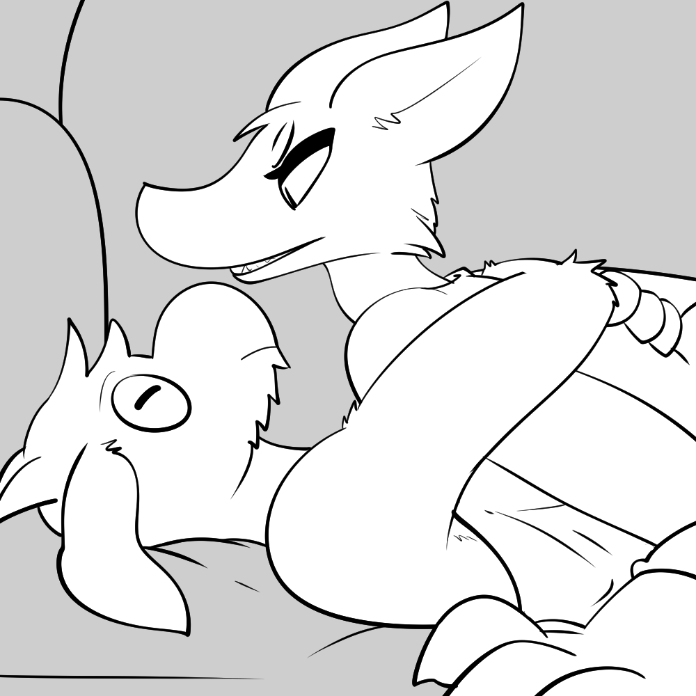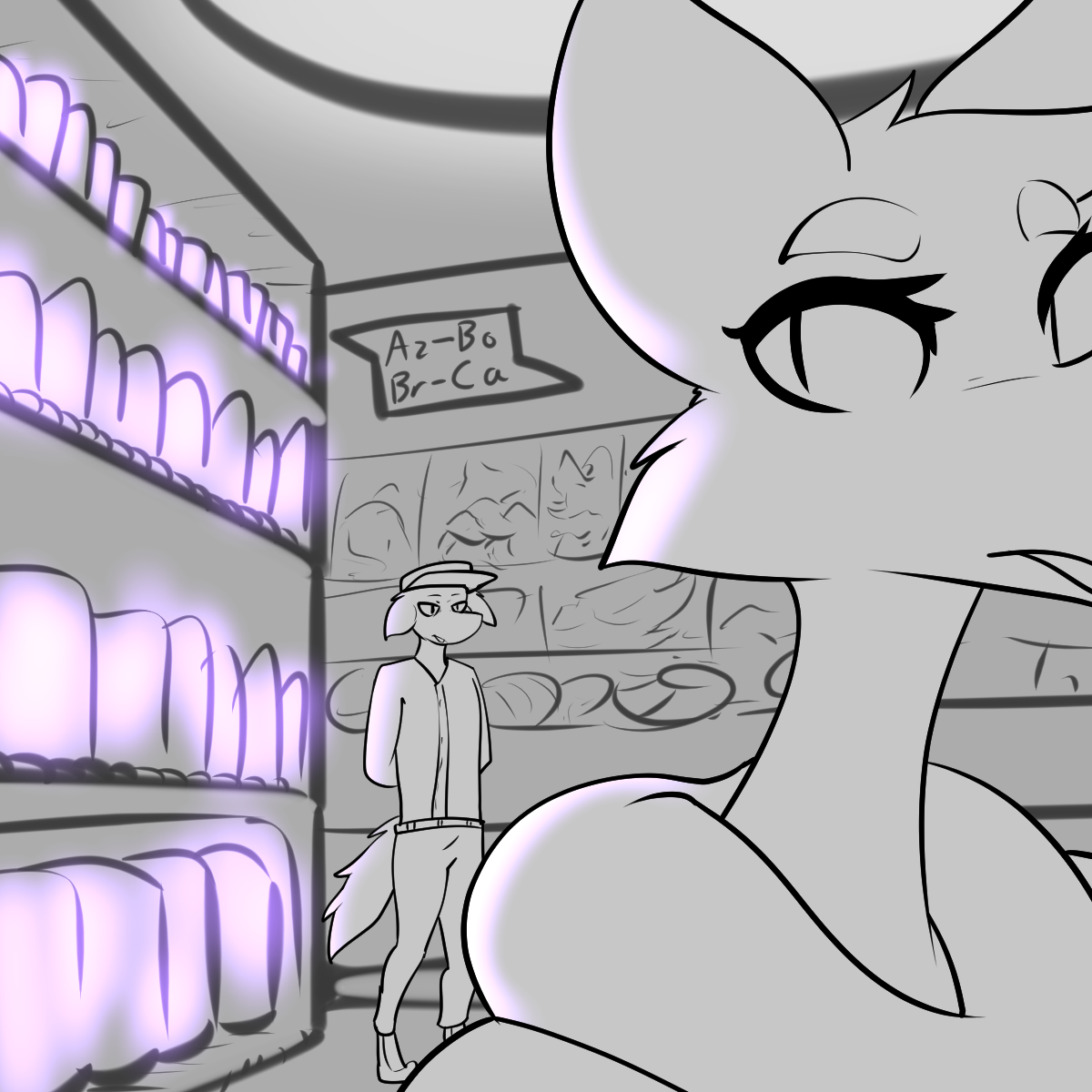 Ah. She really did put me to sleep in her little soul repository, and I wake up to the feeling of a brush running down my back. It seems that Pillet paid Vix enough to have her sole attention for the evening, and went for a room with a skylight. As my consciousness fully returns, I find us looking upwards.