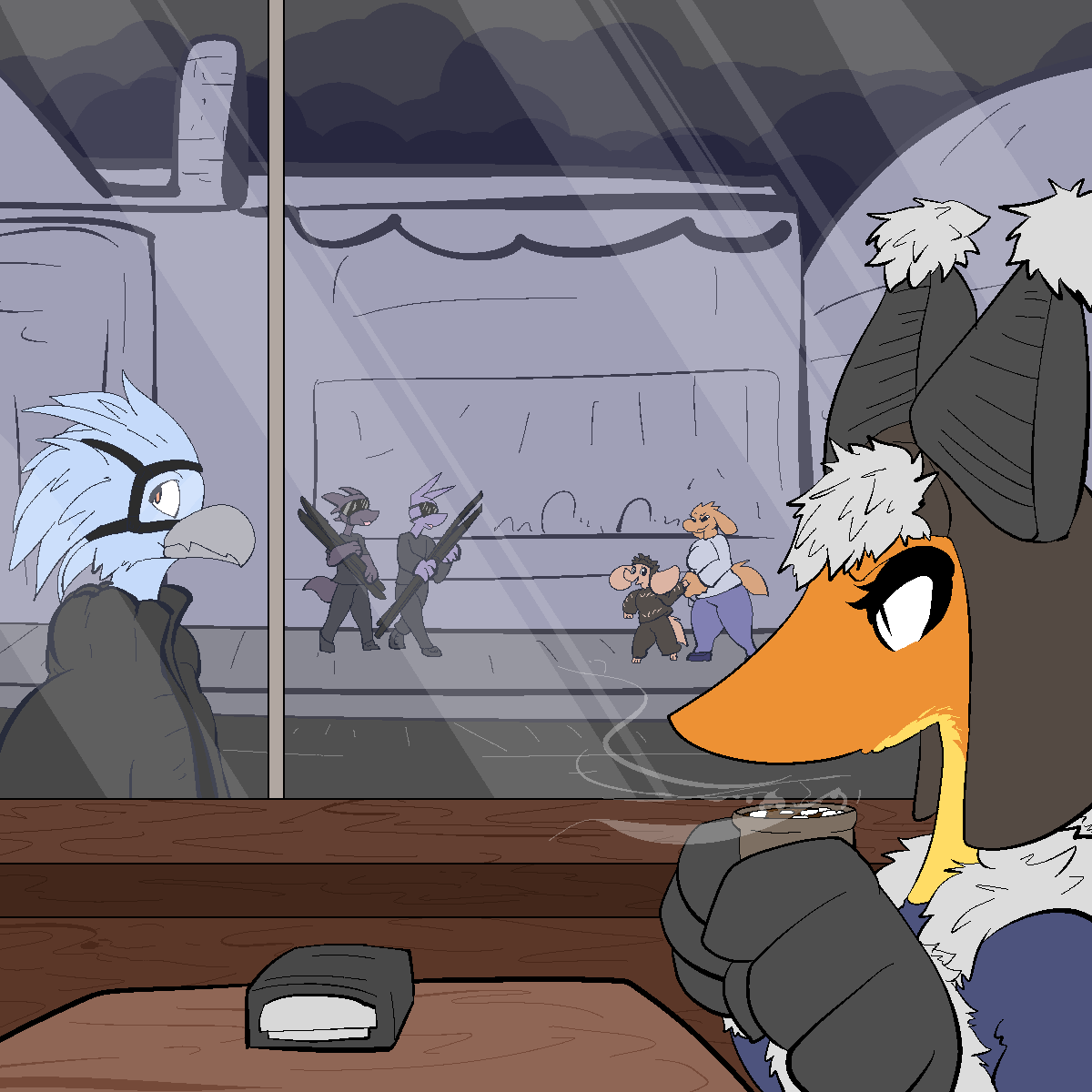 "... Damnit." Pillet looks up at the sky again, noting a small, faint speck. "That place?"