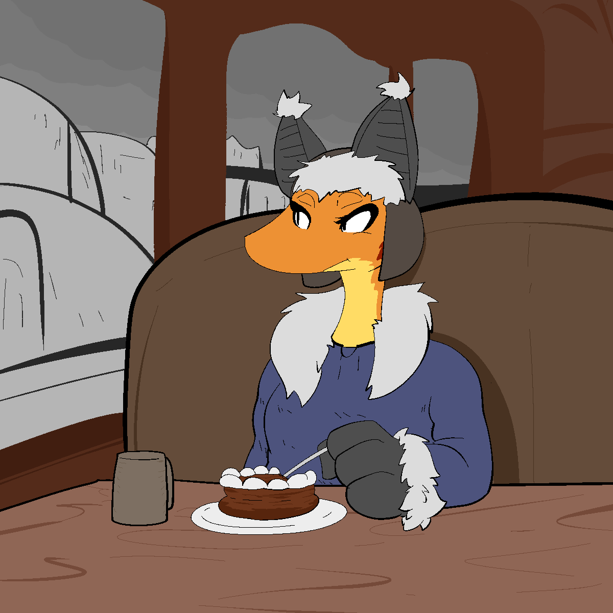 The jump into the fog deposited me far from Delli, but I can fly fast now. 6 months of steady chocolate and food supply without interruption has done wonders for my energy levels, I haven't been this strong in centuries. I find the goat lazing about.