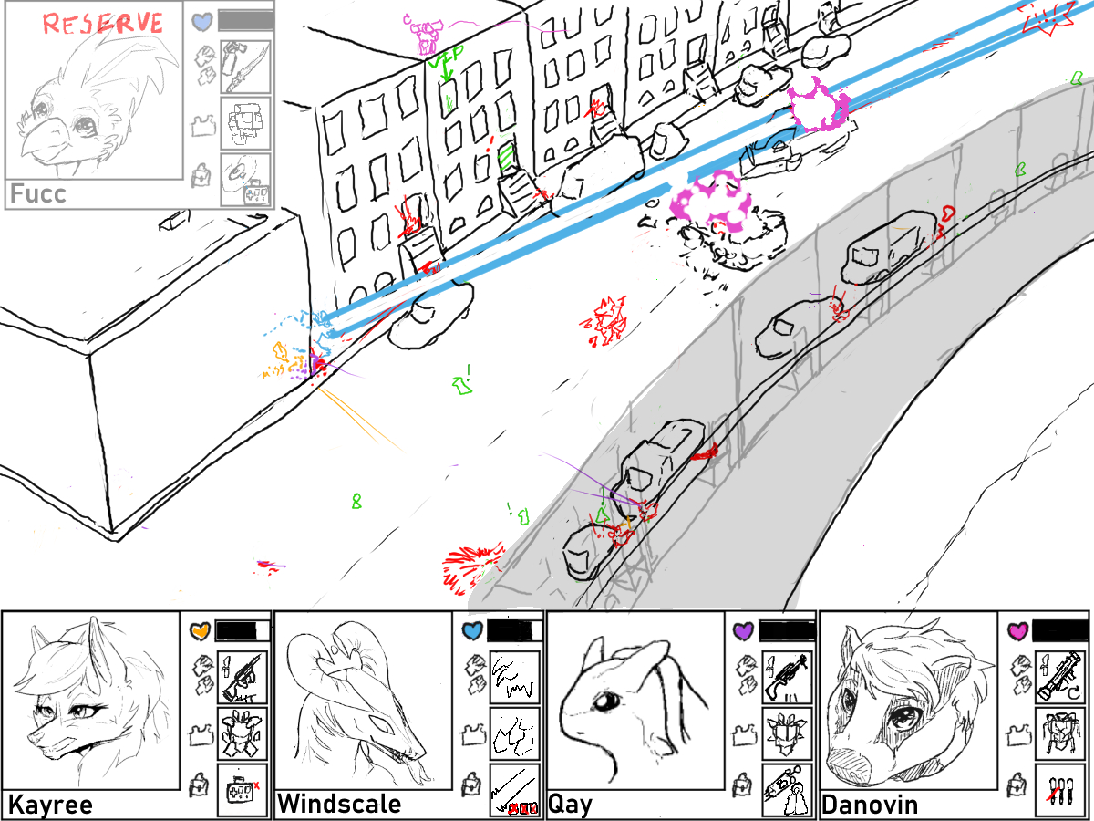 Kayree, keep up the burst fire on the turret gunner, volume of fire is the priority. Qay, prepare to snipe the coyote if Windscale doesn’t kill him, we’ll try to take him out before Danovan turns the rocket launcher on the APC. This might sting, sorry.