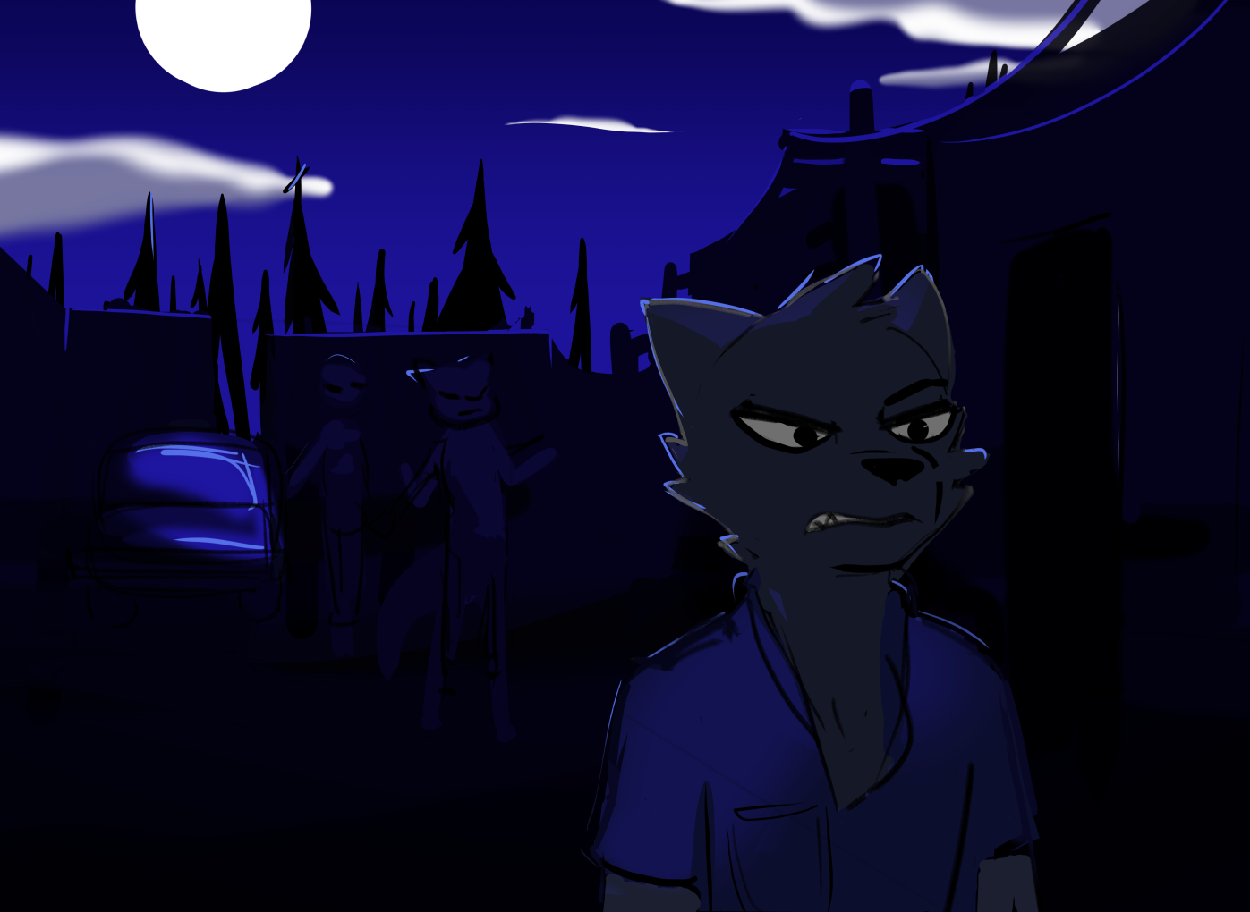 Going home in the dark would suck, even with your good vision. Look at how blue things are, you can't see shit.
