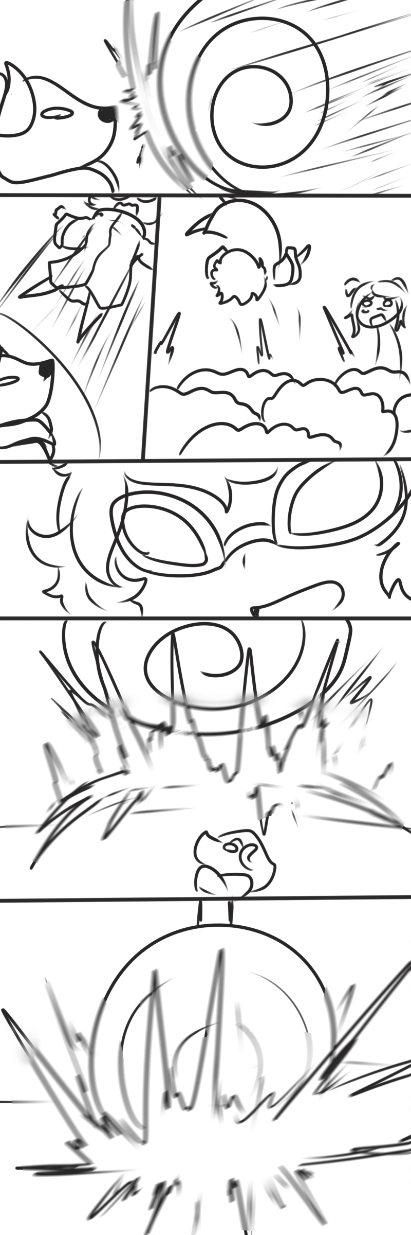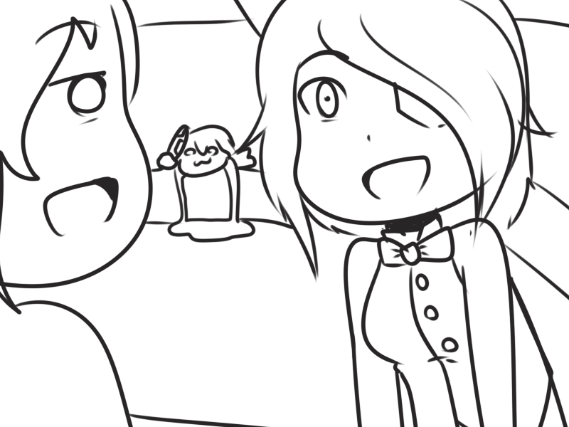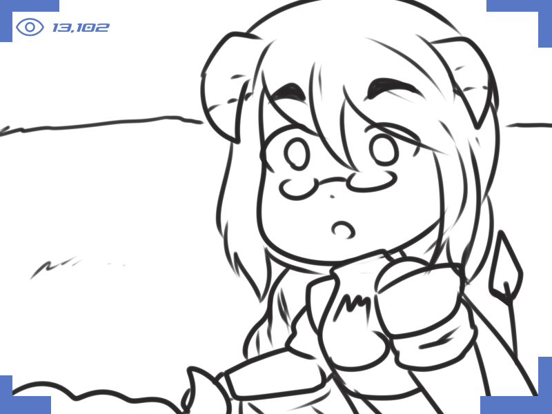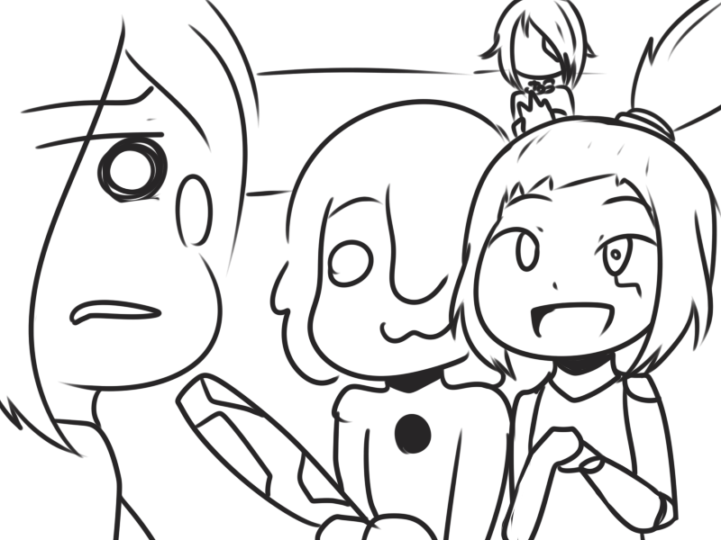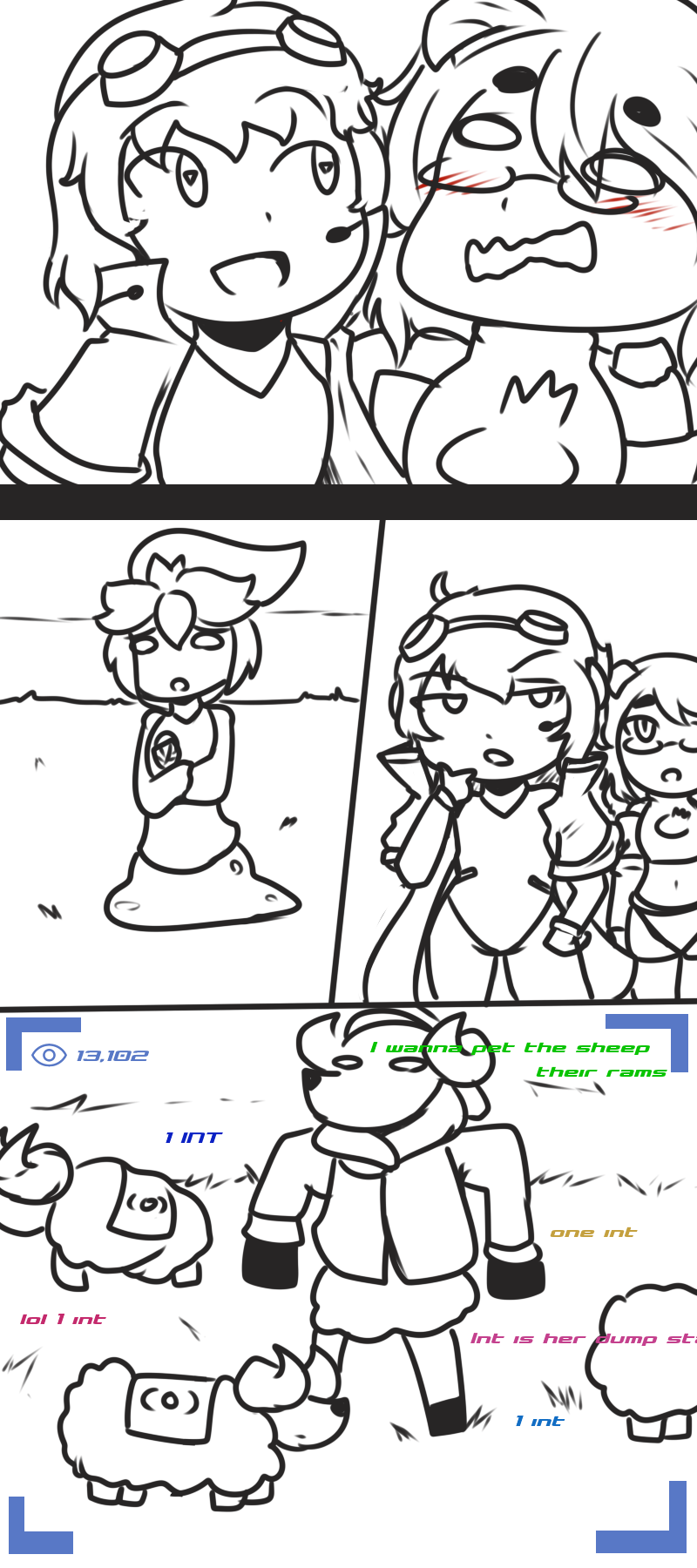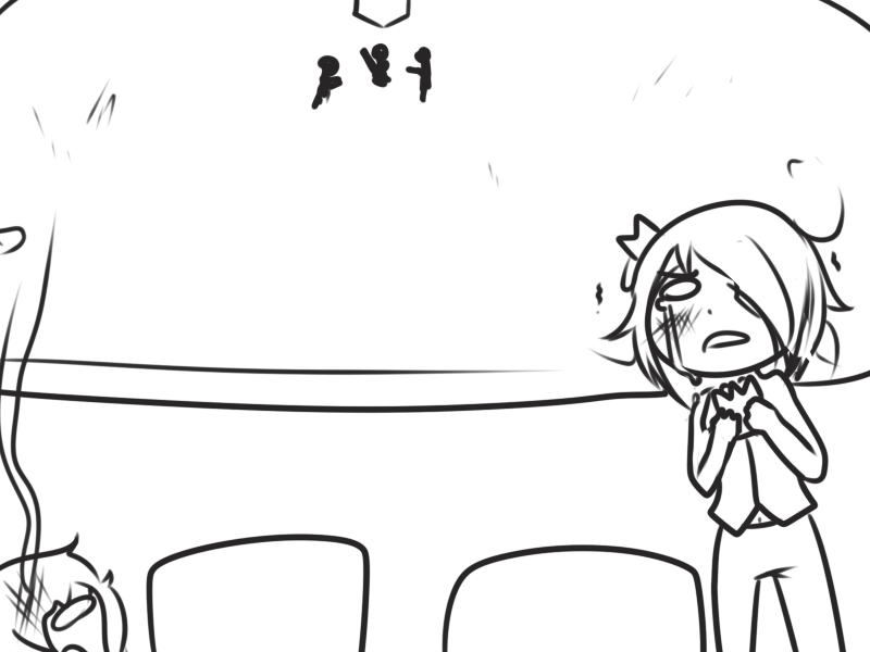 >Ms. Bloops does her usual thing. When finished, Metal Slime can zip in, pick up Ms. Bloops, and sit in view of the camera but running away whenever Arcane turns to see what they’re commenting on.
