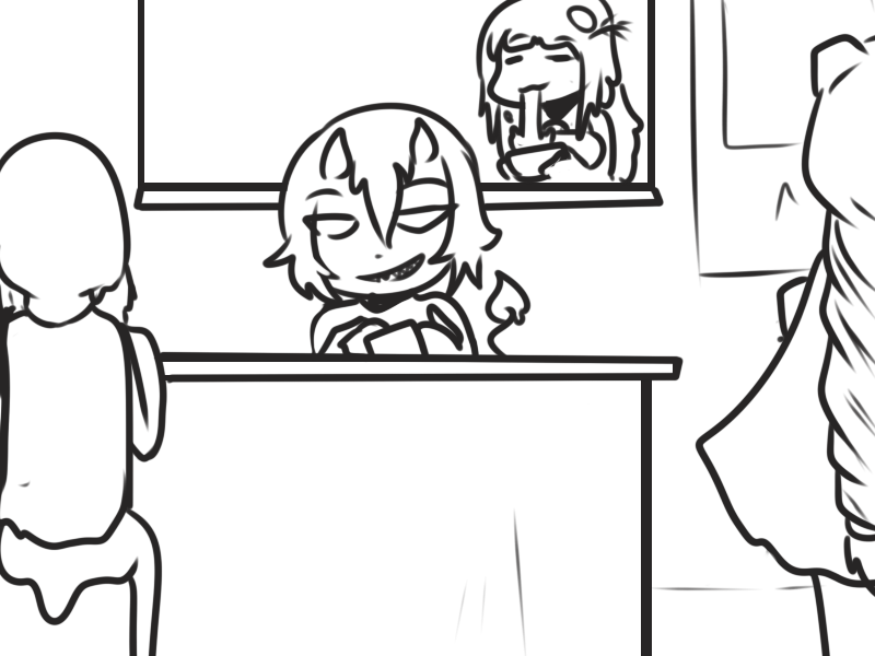 >Lucia is present… somewhere. Her quest is to enter Curi’s room and drop a piece of her in there, distract Curi (or beat her) for two minutes, then return. The most suicidal quest.