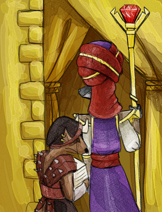 The Vizier approaches his lord, and the lord raises a mask to conceal his twisted face 'Are songs not meant to be sung? how else would you know it's tune.' the smile he gives and the words her speaks are meant to be warm, but Midas is no longer capable to inflect his old charms.