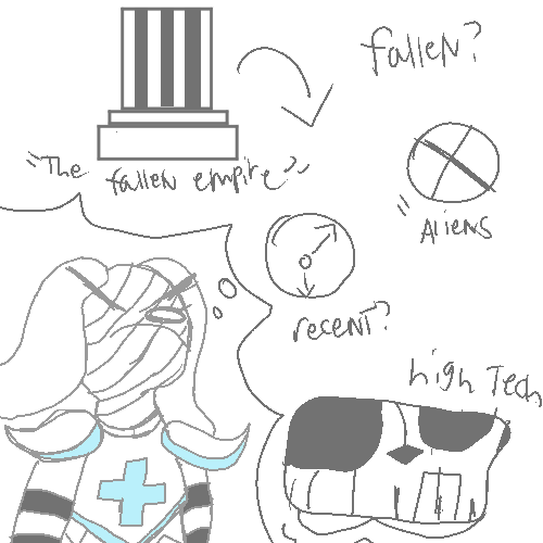 I mean, while I do have experience with the Fallen Empire, there are only a couple of faces I can vividly remember.. If this was the old human kingdoms on the east, rather then the empire on the south, maybe I’d know who it was, but alas.. I don’t think I know who it is. I shake my head, then look over to Muni, who looks overwhelmed.