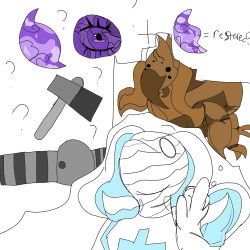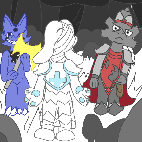 “So I was thinking some sort of scavenger? Maybe during our trips, battles, or explorations, or even around here, you go around and pick up items, weapons, various equipments, maybe somtimes act like an thief, but mainly using stuff that people won’t need to use anymore.”