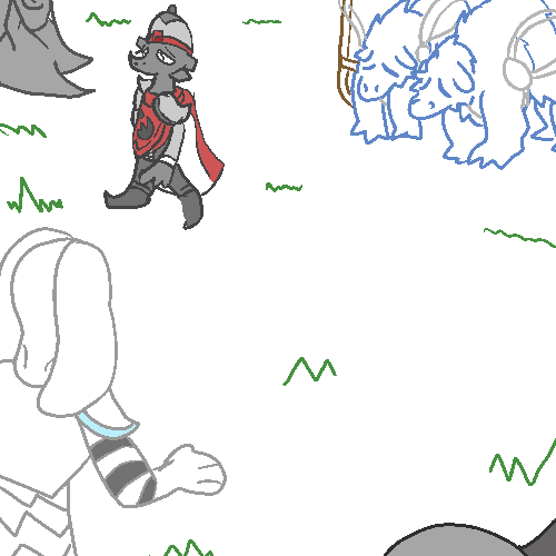 I notice Bardeibor is far away from the group; he is perfectly naked, unlike the modest kobolds of before; he has markings of a particular god whose memory has been lost in my inevitable slumber, with a large oversized great-axe in his hands stalking nearby prey; he is hidden among the grass like that of a predator, his rear high in the air about to pounce on suspecting victims.