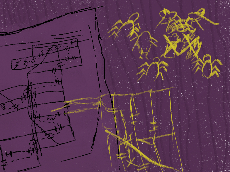 With no time to waste you run down the corridor. The trail of yellow ichor is easy enough to follow as you transition into the dining room underfloors. According to the beetle's map they were ambushed not to far in. You don't see any branching paths on the way.