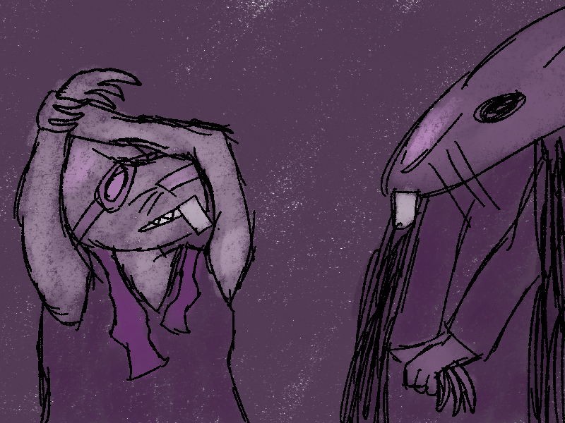 "Subtlety was brought before the Witch to answer for her crimes. Deer and boar, fox and wolf were all baying for her blood. Subtlety bowed her head, and waited for the judgement she knew she deserved." You lean in to deliver the big finale. "The witch raised her long and spindly hand, and the crowd hushed, anticipating some terrible magic. Yet when that hand fell it was not to slay, but instead to gently pat Subtlety on the head. 'There has been enough blood shed.' the Witch said, her voice but a whisper 'Let her repay it now with her life.' So saying, the Witch placed a small seed on Subtlety's head."