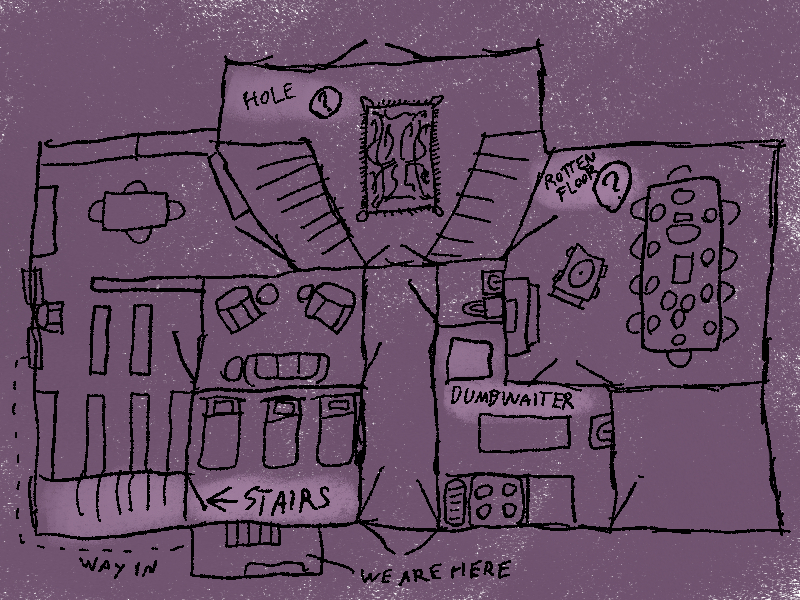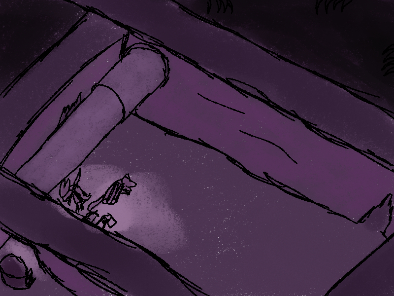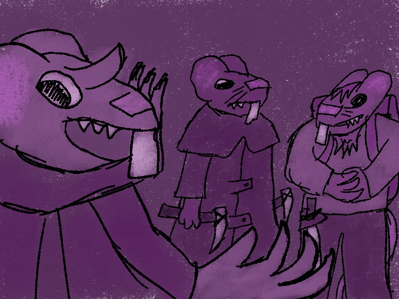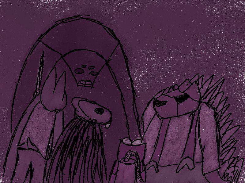 You tell the tragedy of Subtlety, the deer maiden who fell in love with a wolf. The big fellow listens raptly as you recount how the shy doe sought the help of the Witch to become a wolf herself and capture the heart of her love, only to find after her long journey that he had taken another deer as his lover, despite the ire of their families. Her despair turned to seething resentment, and she stoked the fires of jealousy and distrust between the forest folk to try and tear the couple apart. The fighting became so bad that it drew the attention of human hunters, and worse, witchfinders. After terrible losses the bigger folk of the forest were forced to retreat into the deep woods, where the Witch made such impenetrable snares and tangles that the hunters could pursue no further.