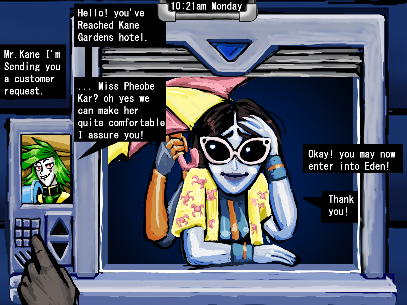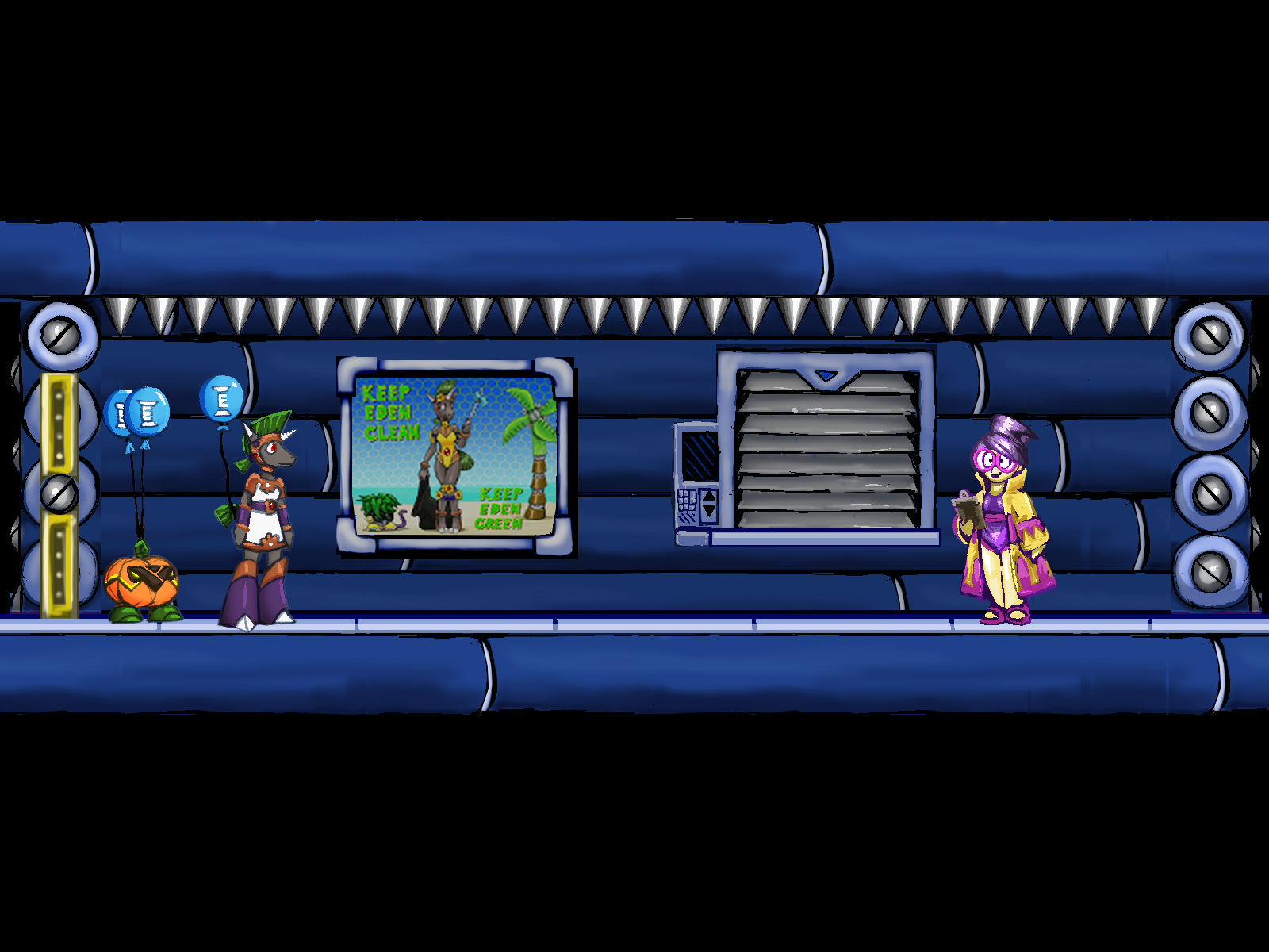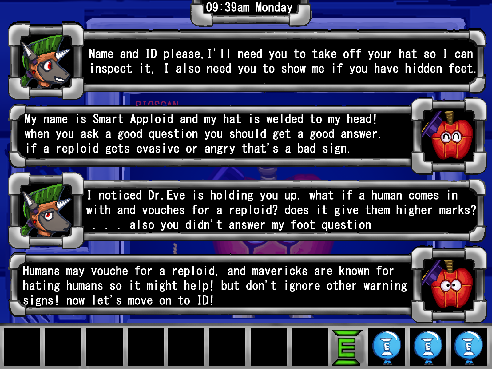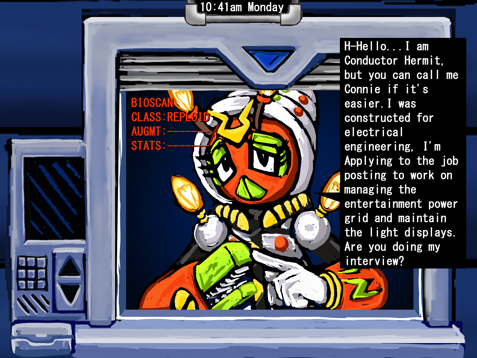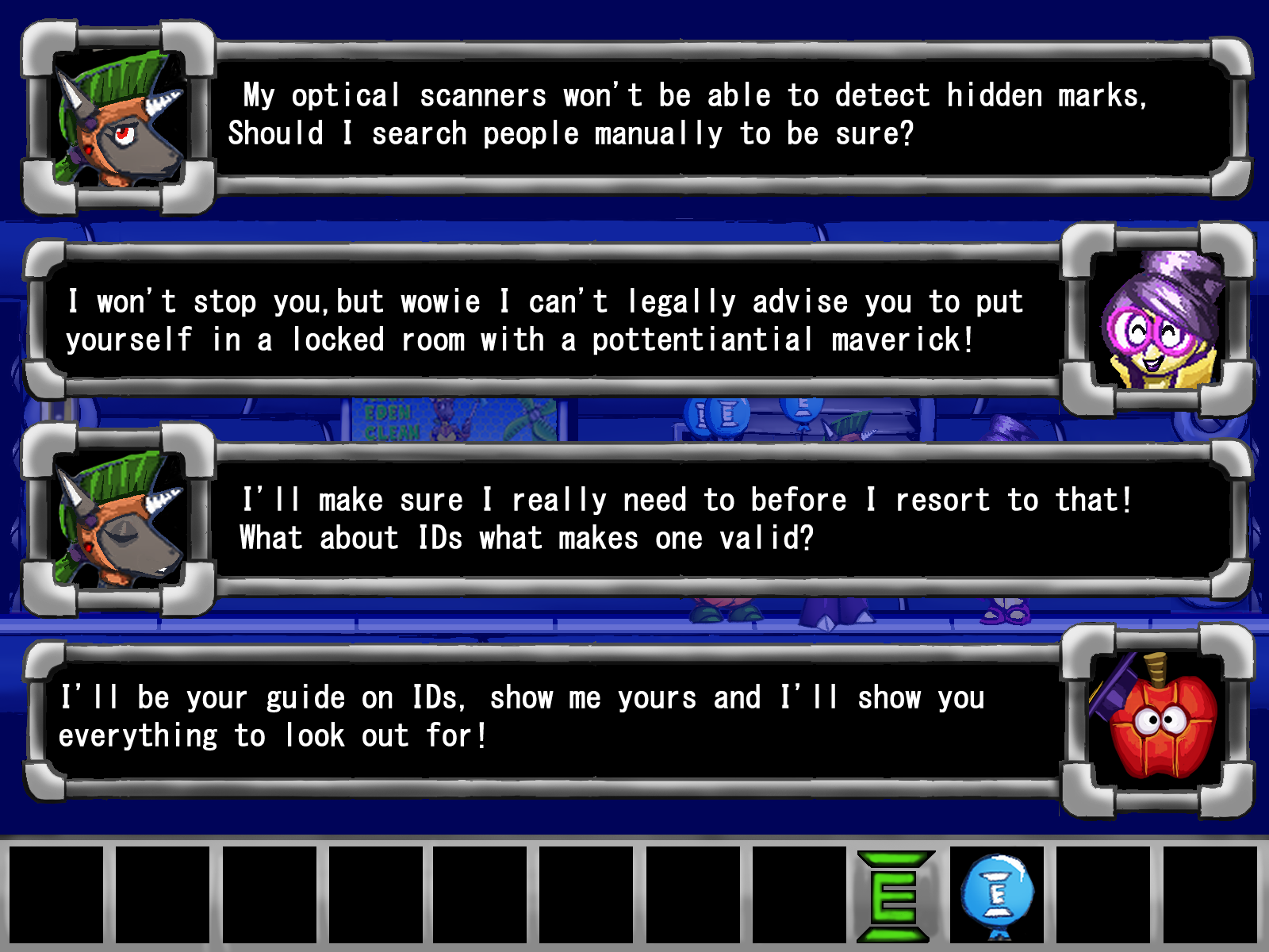 Well, this day just got a whole lot brighter (and shinier)! Not only is the next entrant another reploid, but she's the famous Gilded Goose here to meet us in person! Or an impostor trying to exploit her fame to bluff her way past security. A Maverick Hunter can't afford to let her admiration get in the way of investigating a potential Maverick.