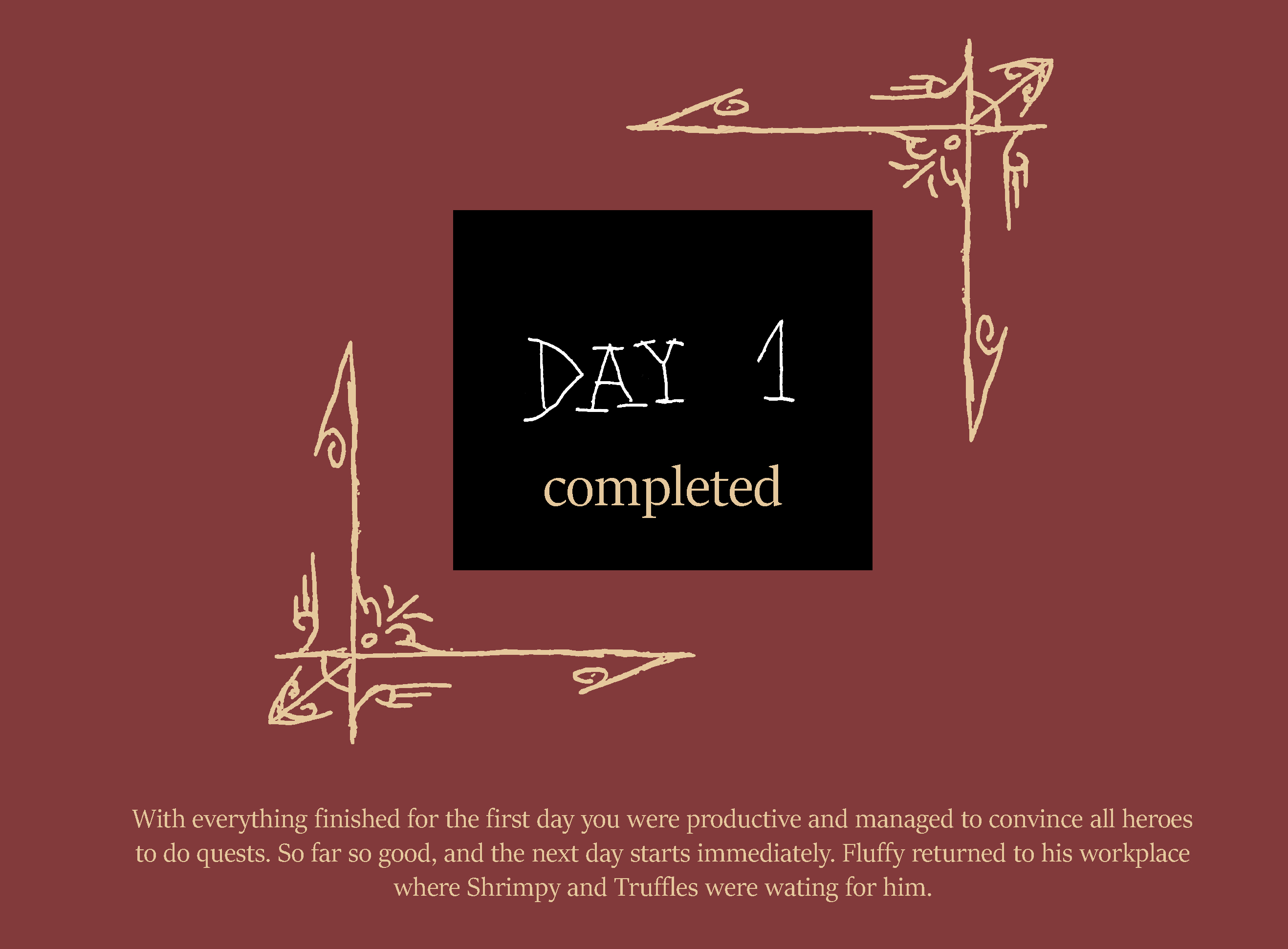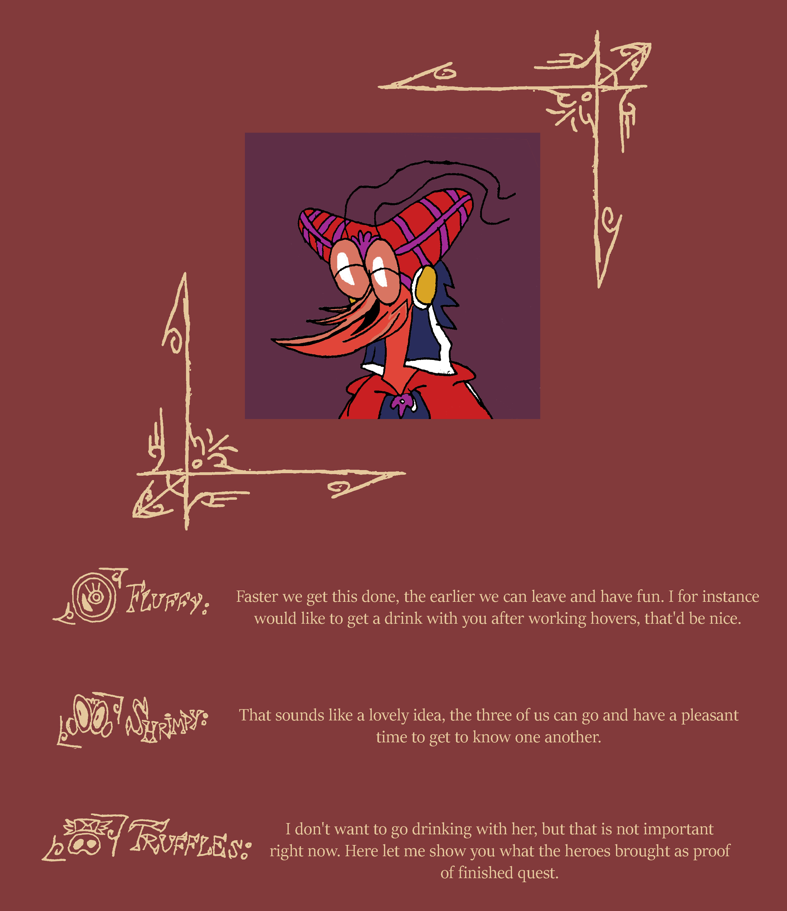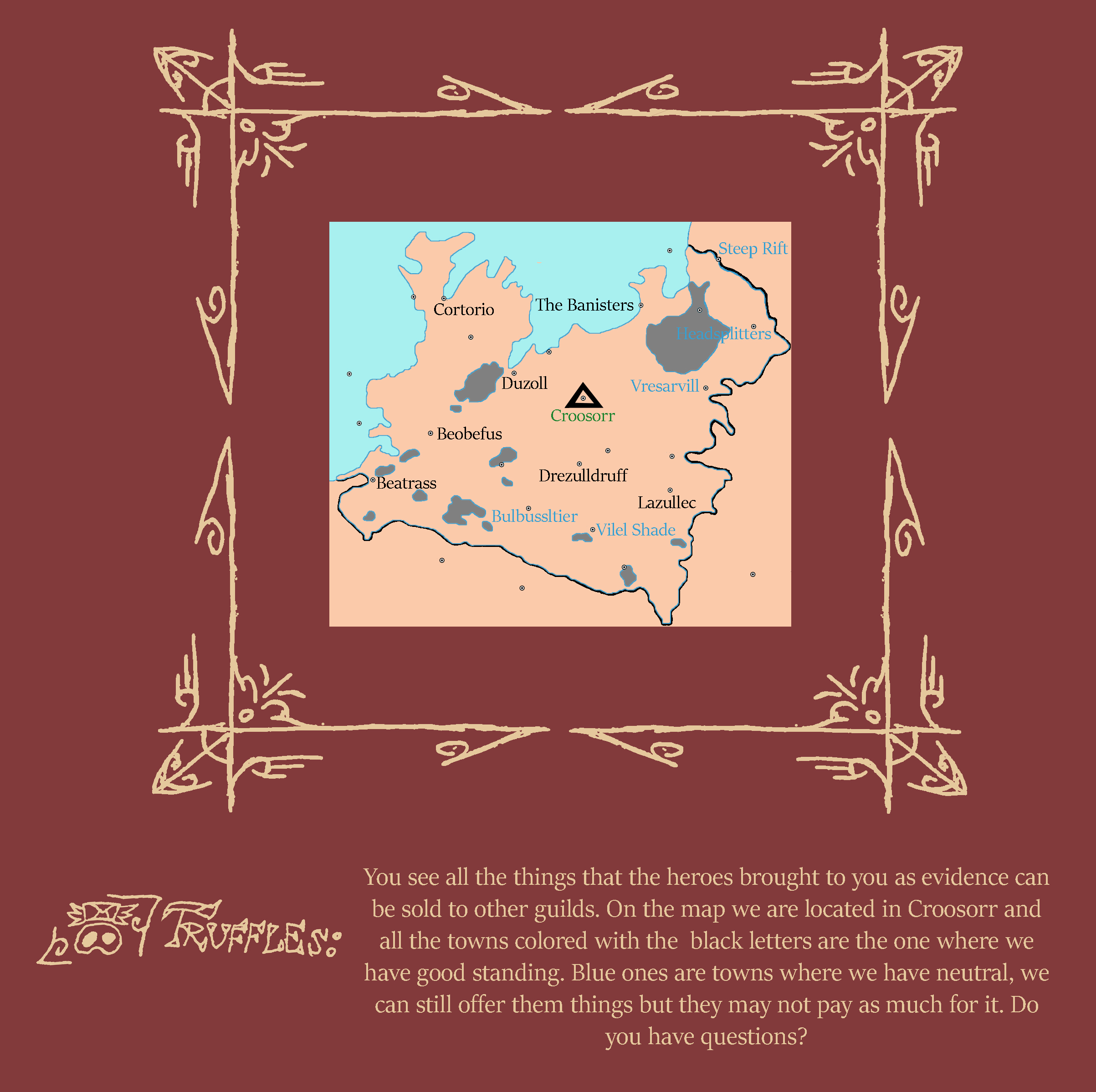 Ballerina Knight: excellent job. Though I wonder, what was her side of the story with what happened with the imprisoned knight and the merchants? She probably witnessed all that. Also, did she find out why that eye was observing the village? I suggest giving her bonus pay for taking care of both jobs.