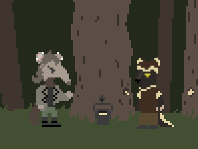 We get a little nosey and sneak over behind a bush and watch. There’s an anteater and a wolverine by a sap tree.