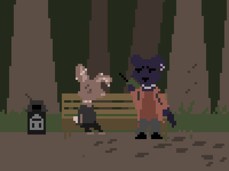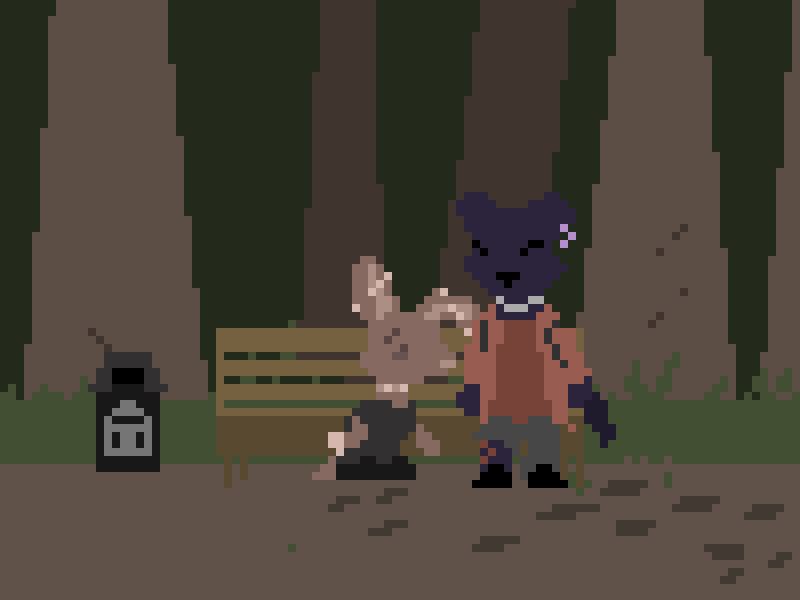 Frolic towards the pair, singing your favourite whimsical tune, traipsing through the grass as the sun falls from between the tree tops.