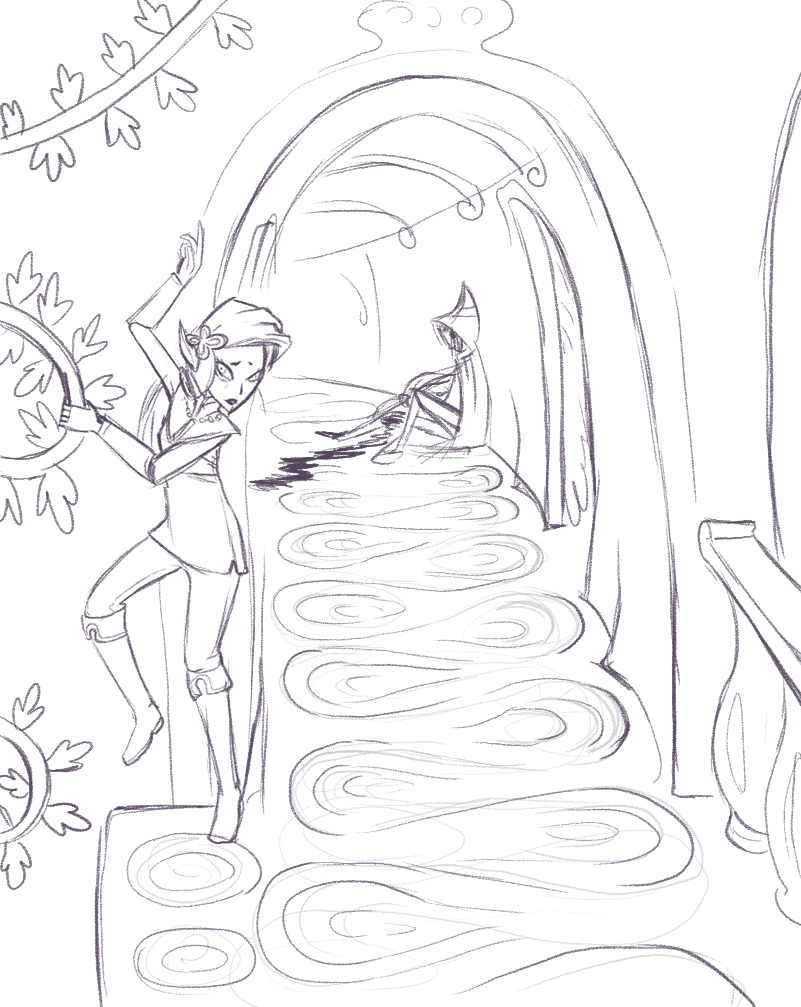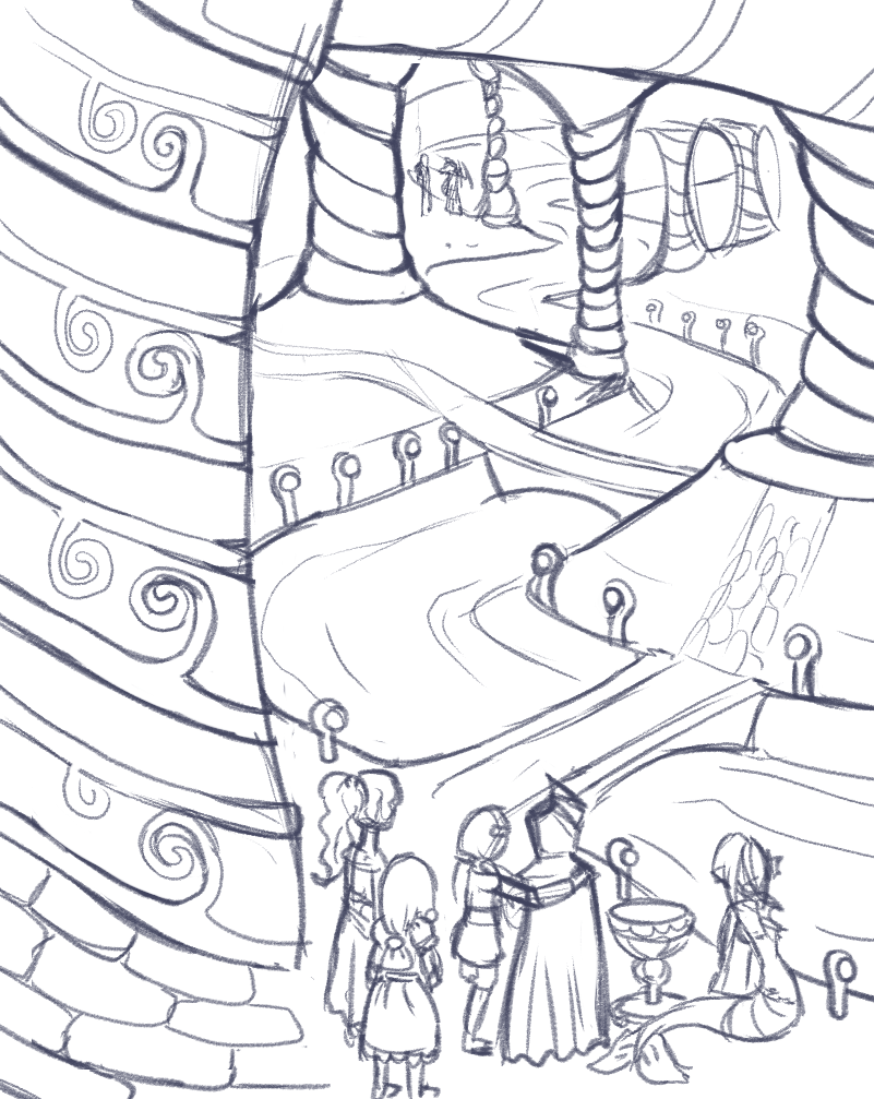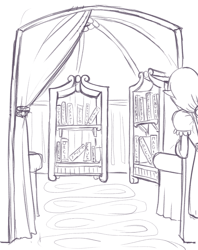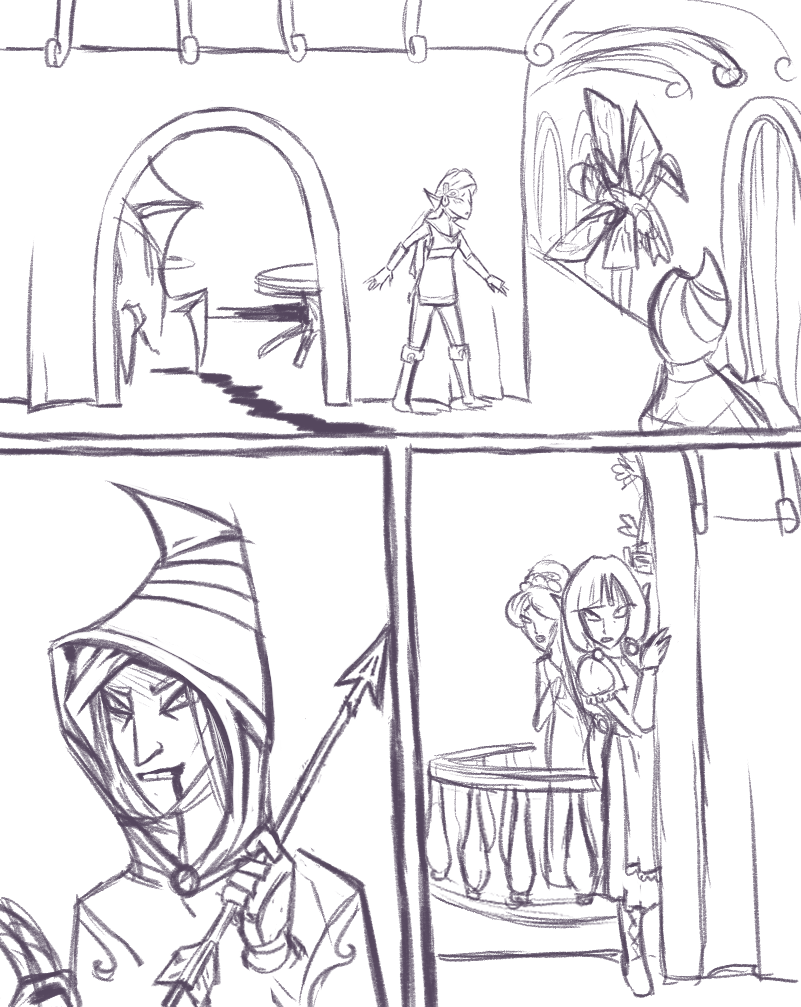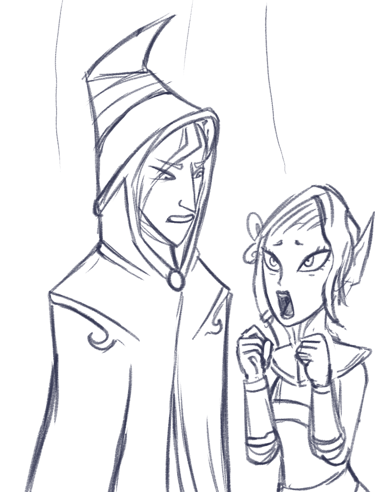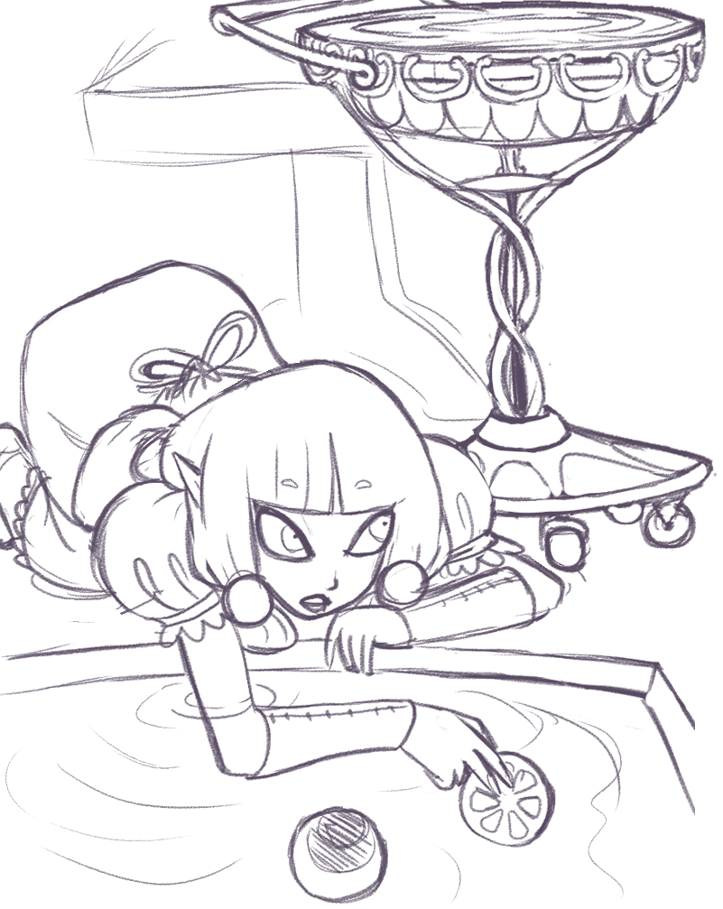 Iolantha looks into the kitchen, she doesn't see anything in there she whispers to Eranil ' keep a look out at the water basin, I think somethings hiding inside, I'm going to gather supplies' Eranil nods