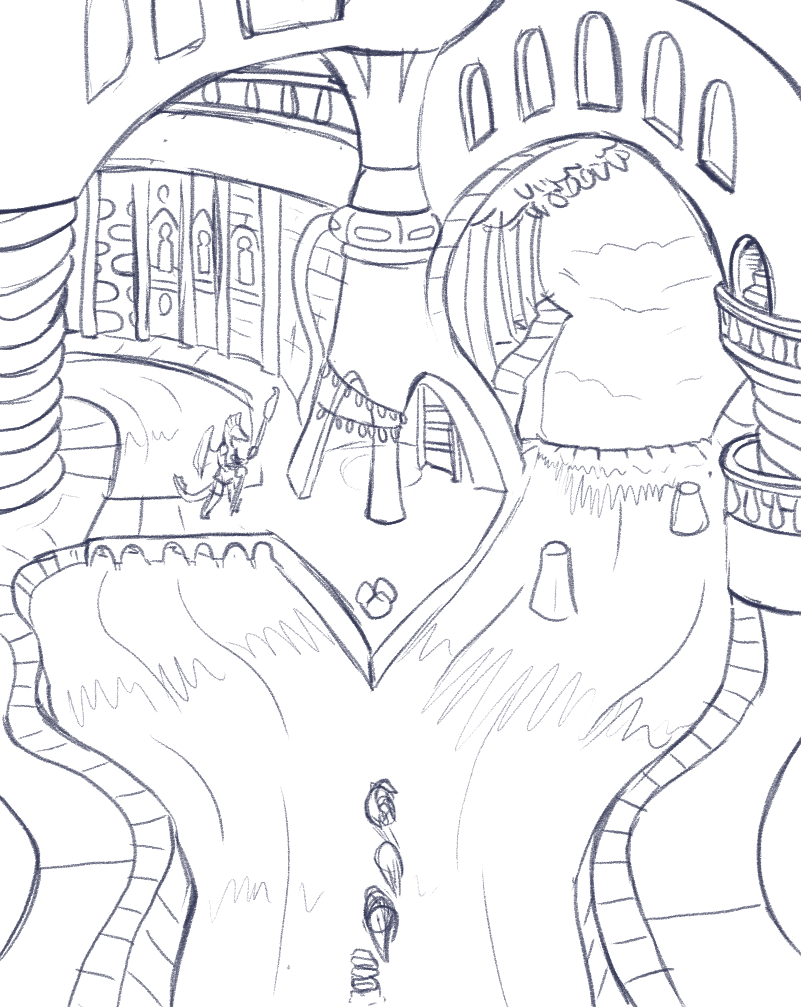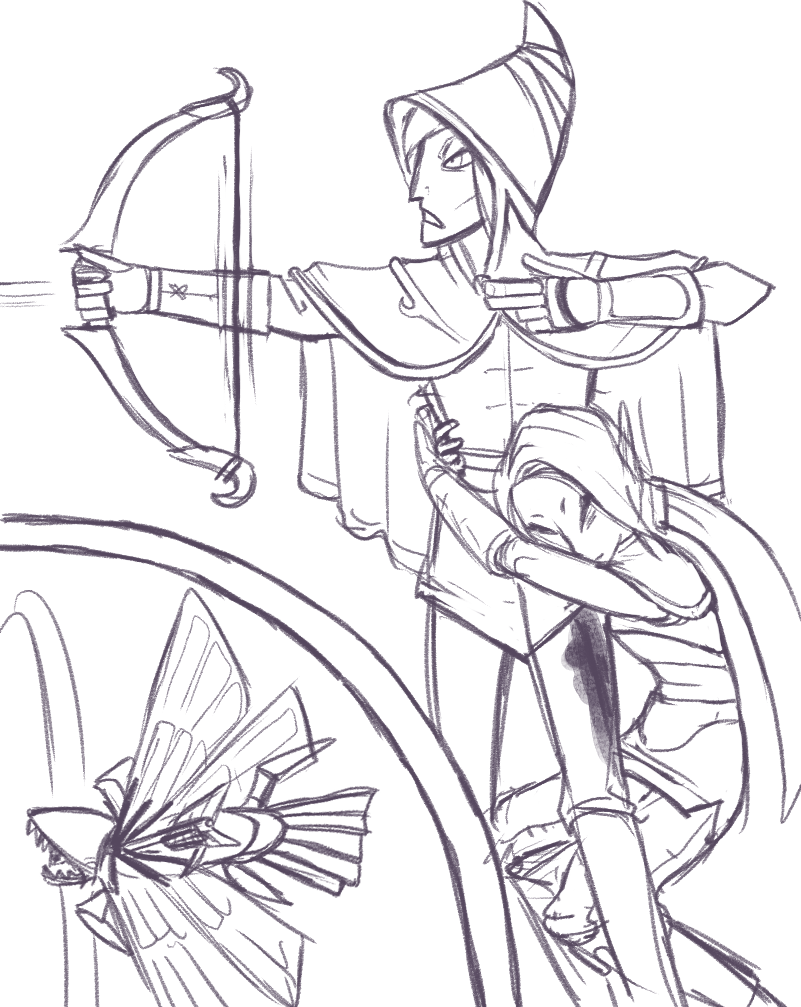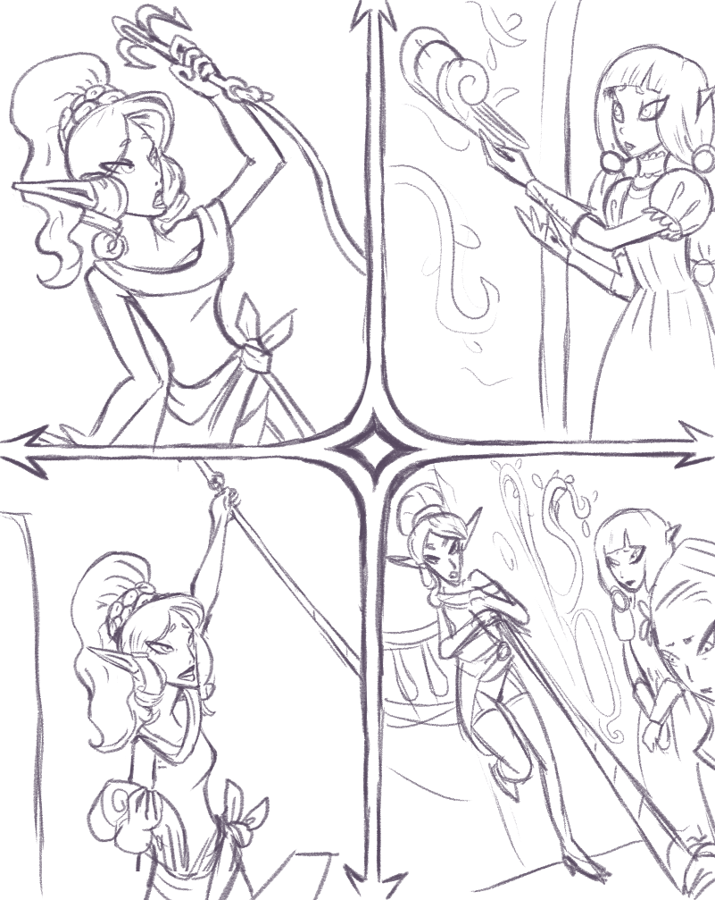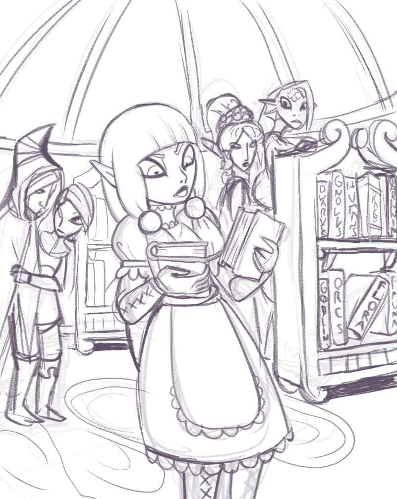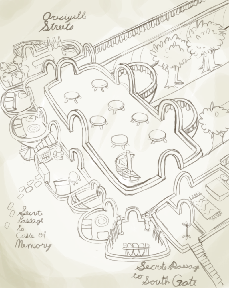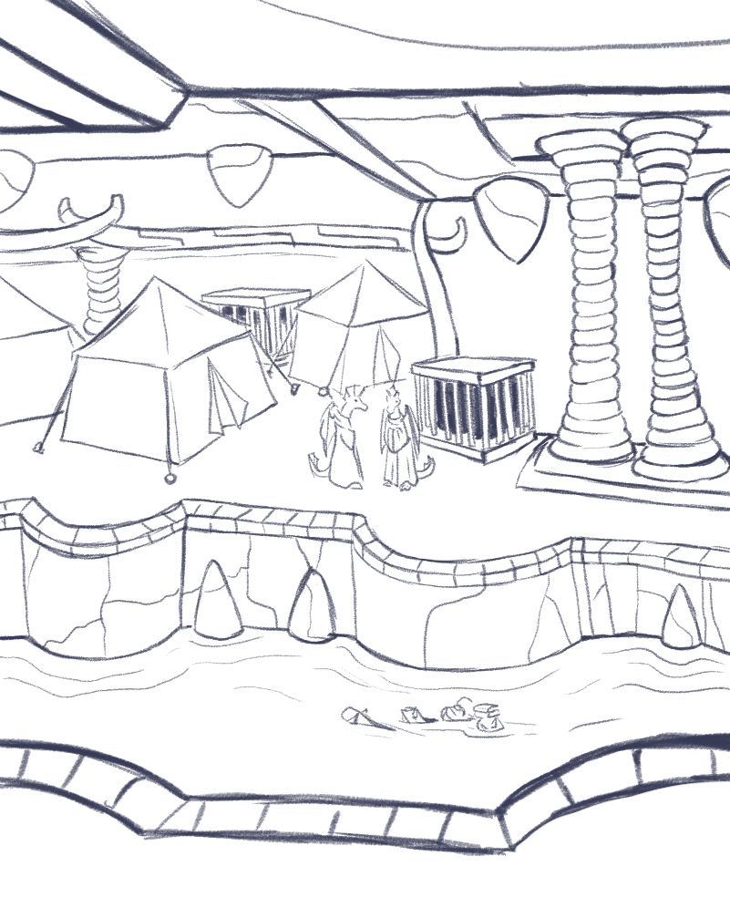 Iolantha looks into the kitchen, she doesn't see anything in there she whispers to Eranil ' keep a look out at the water basin, I think somethings hiding inside, I'm going to gather supplies' Eranil nods