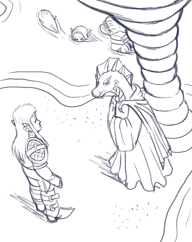 the siren speaks broken elven 'Please help! Please help!', Iolantha understands why the creature needs help, she is much too large to fit through the drains out to the river. there's no escape that way.