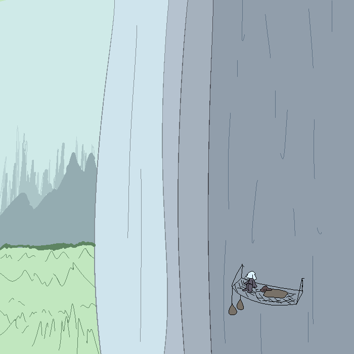 Previous thread: http://tgchan.org/kusaba/questarch/res/448327.html Discussion thread: http://tgchan.org/kusaba/questdis/res/59466.html It’s been morning for a while. My stomach is getting antsy but I pretend to sleep for a while longer. I guess McTrinkets has been rowing our coracle along all night. Even at this slow pace we have to be a decent distance away from House Aifix by now. I have no idea if Geofahn’s following us or not. I mean, they have a dreambug dream-stalking my dream-future, I guess. That’s probably going to suck. McTrinkets finally nudges me with her boot and wakes me up. “Hey. Let’s pull off-stream for a while and have some breakfast.”