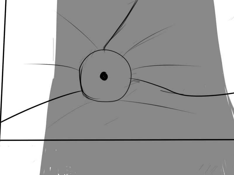 It's dark. Light streams in through the window. Tired eyes stare out of it; despite the light being at a blinding level, they do not look away.