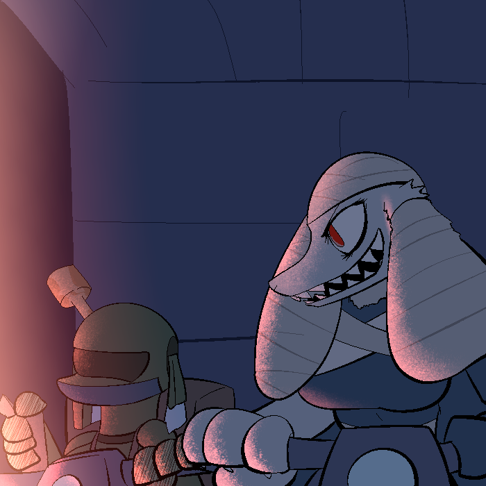 So we wait. That night, no drop occurs. A whole bunch of our undercover people hang around the alleyways and bars of the drop zone. Hard to tell who is with us and who's not since it's on a need to know basis, but no group shows at the alleyway. So we skip that night. The next night, the same thing happens. Nothing. The next day is said, by our informants, to be the last window of opportunity for the drop based on what scraps of information they were given. So it's definitely going to happen if the gold arrives at all. Jules hasn't figured out anything. He trusts Malsen, and no one else seems to be talking about us behind their back, at least not with anything we didn't already know. Lamarra seems to be minding himself, occasionally joining Jess and me. And the two or three of us do nothing but sit around, eat and drink with our own money, as our little vacation starts winding down. And in our rooms, Jess and I just hang around and chitchat. Sometimes conspiring of how to kill Red, or try to. It usually ends up less conspiring and more vivid daydreams about elaborate, goldberg machine-esque plans that involve a spectacular demise for the fucker. Never really talk about the drop zone, though since tonight sounds like it's gonna be the big day, we may have to. Jessica's been rather worried. Well, all of us, but somethin' tells me her especially. We have given serious thought for bailing, but getting back to Zozu homeland, nevermind the turrets, wouldn't be easy without getting seen by Maklata's men. And if abandon our orders, Maklata might have no issue with gunning us down without repercussions. I'd bet, in fact, that he hopes we run off.