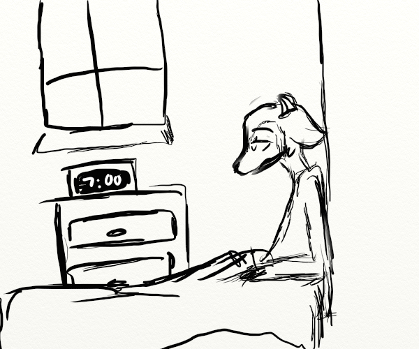 The sun rises, letting in a very bright light into a room. ((This is the start of jill quest. The story about a little jackal named jill. This is my first time doing a quest so please excuse how much i'll end up messing up. There would be better art but I have no tablet no this is all mouse drawn. Now that my little intro's done, let us start.)